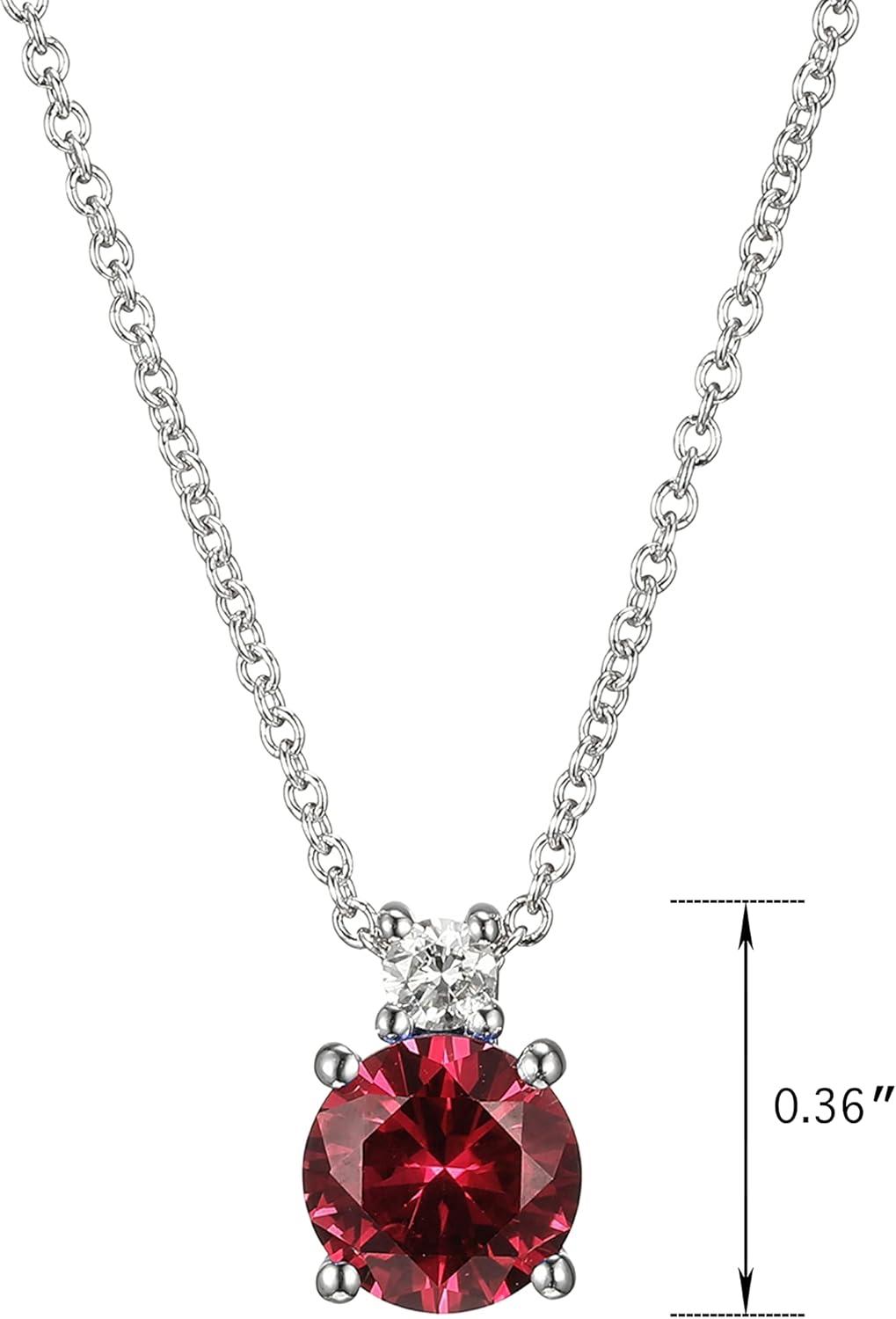 Amazon Collection Created Gemstone and 1/15 CT TW Lab Grown Diamond Pendant Necklace with Cable Chain in Platinum Over Sterling Silver, 18″+ 2″ Extender(Ruby)