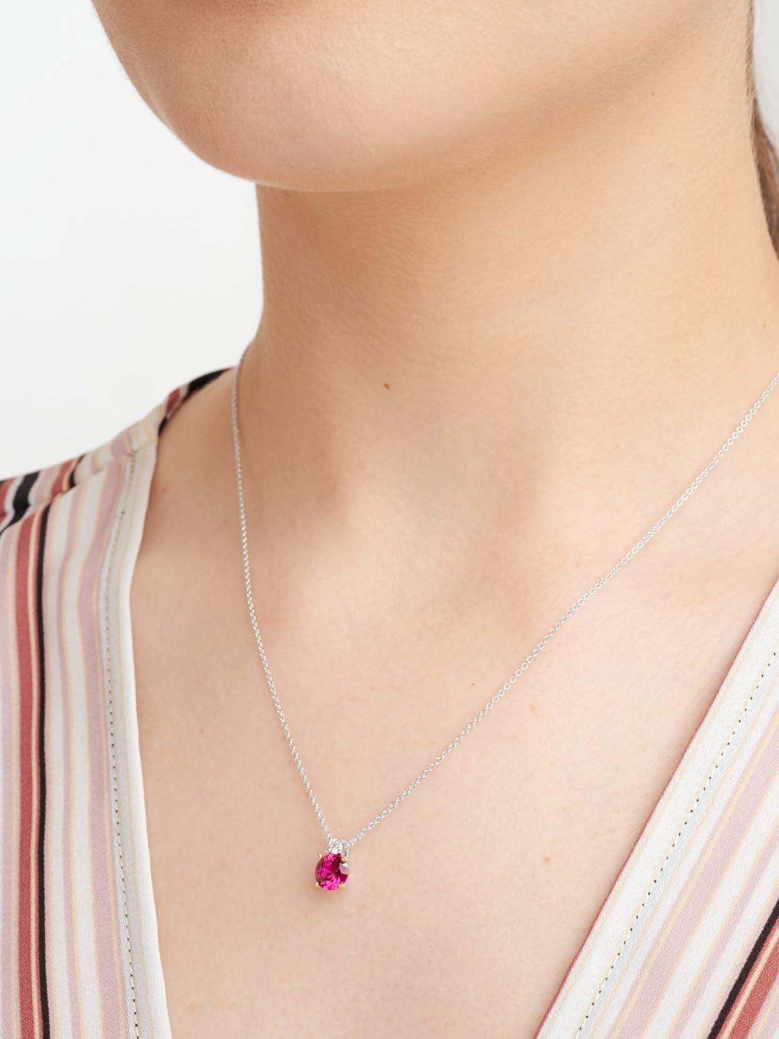 imageAmazon Collection Created Gemstone and 115 CT TW Lab Grown Diamond Pendant Necklace with Cable Chain in Platinum Over Sterling Silver 18quot 2quot ExtenderRuby