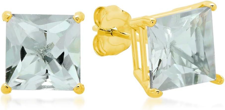 Amazon Essentials 10K Yellow Gold Princess cut Stud Earrings, 5mm/7mm(Blue Aquamarine)