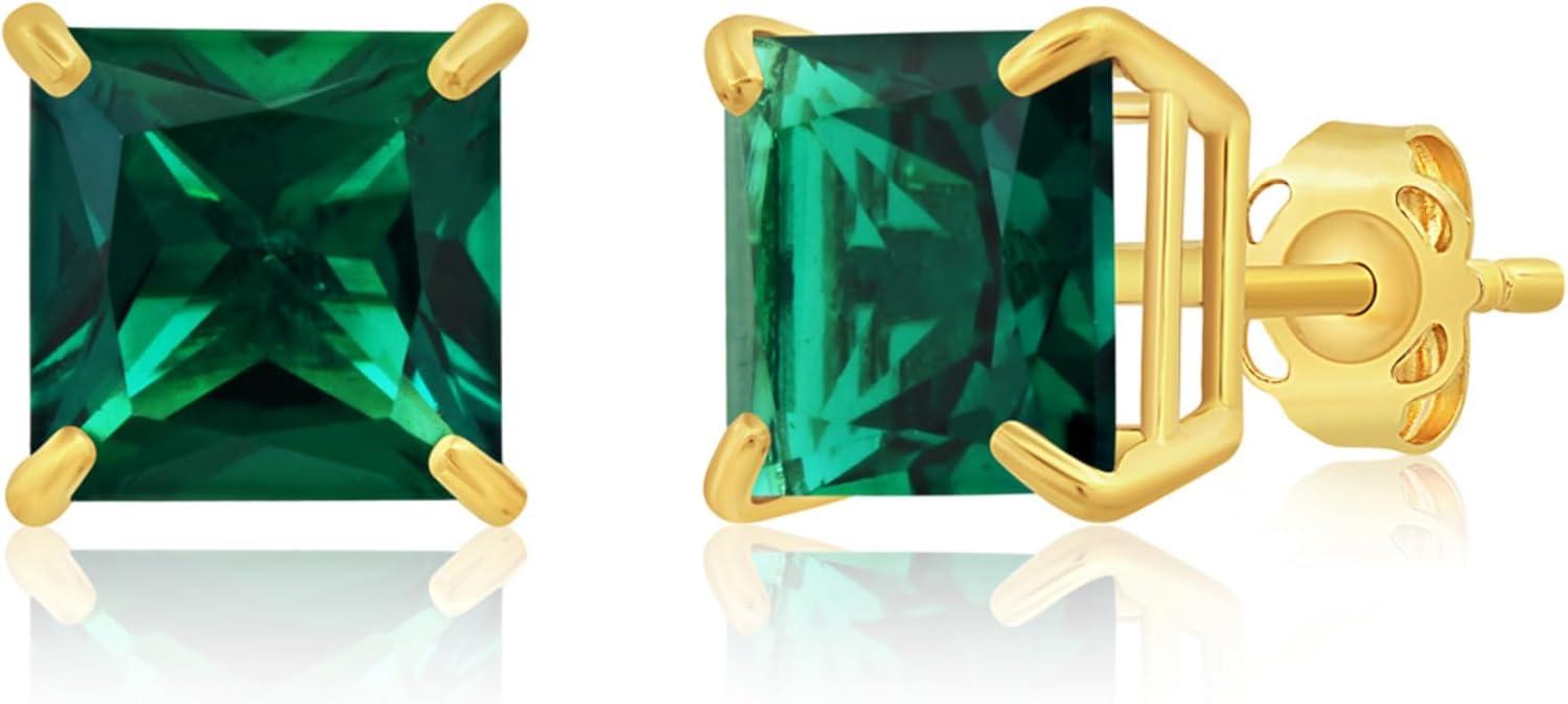 Amazon Essentials 10K Yellow Gold Princess cut Stud Earrings, 5mm/7mm(Green Emerald)