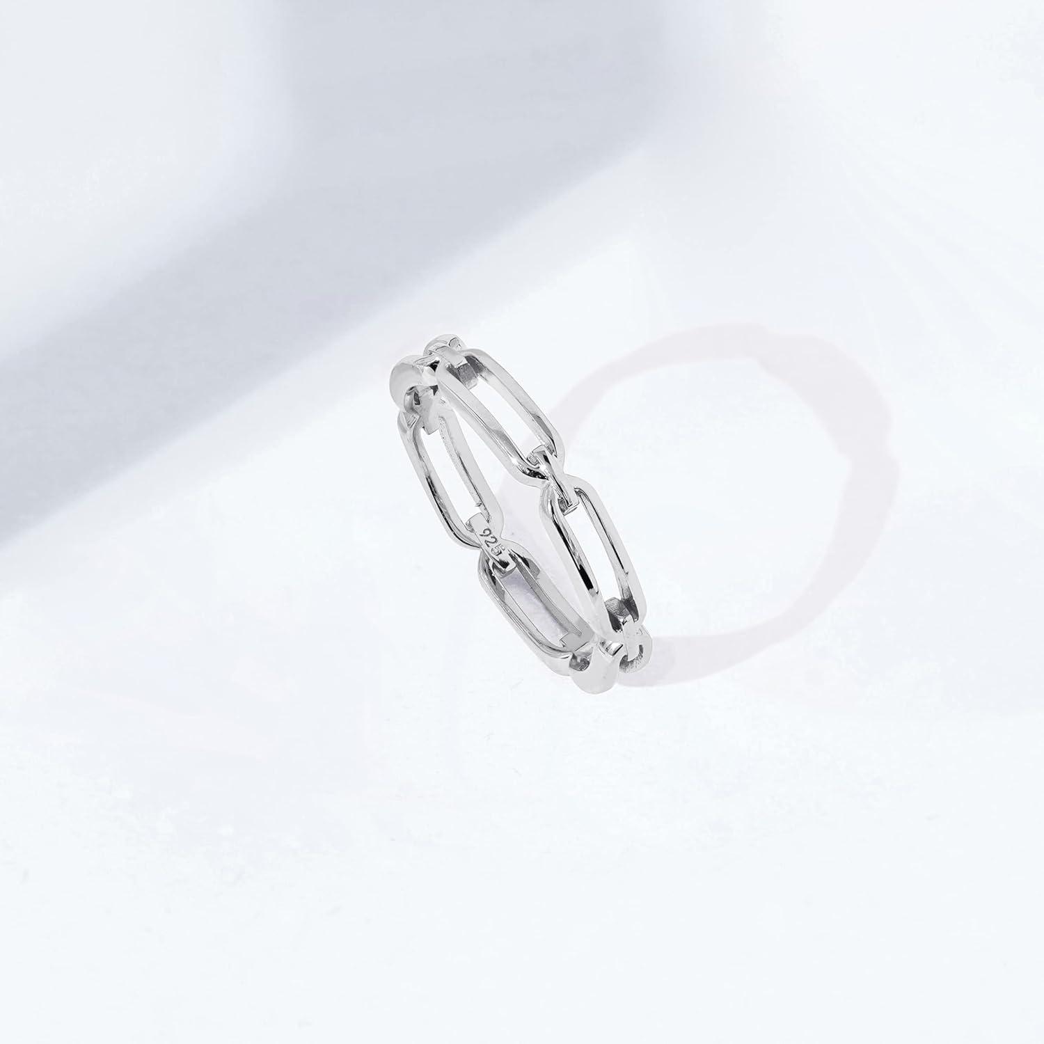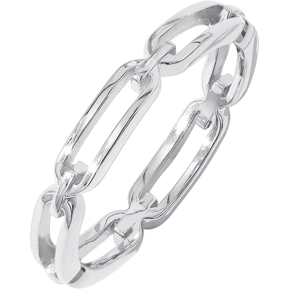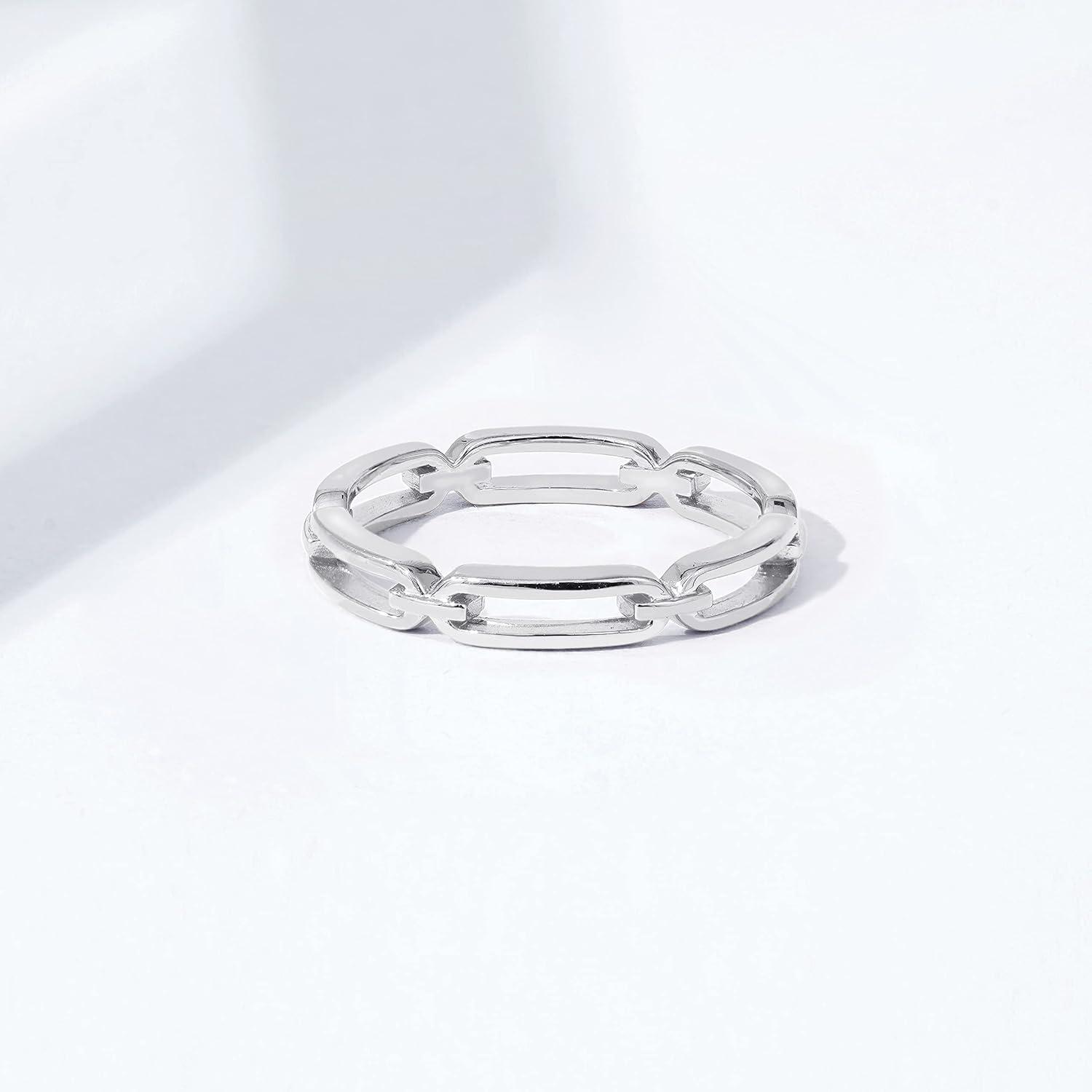 Amazon Essentials 14K Gold or Rhodium Plated Sterling Silver Chain Link Band Ring(Rhodium)
