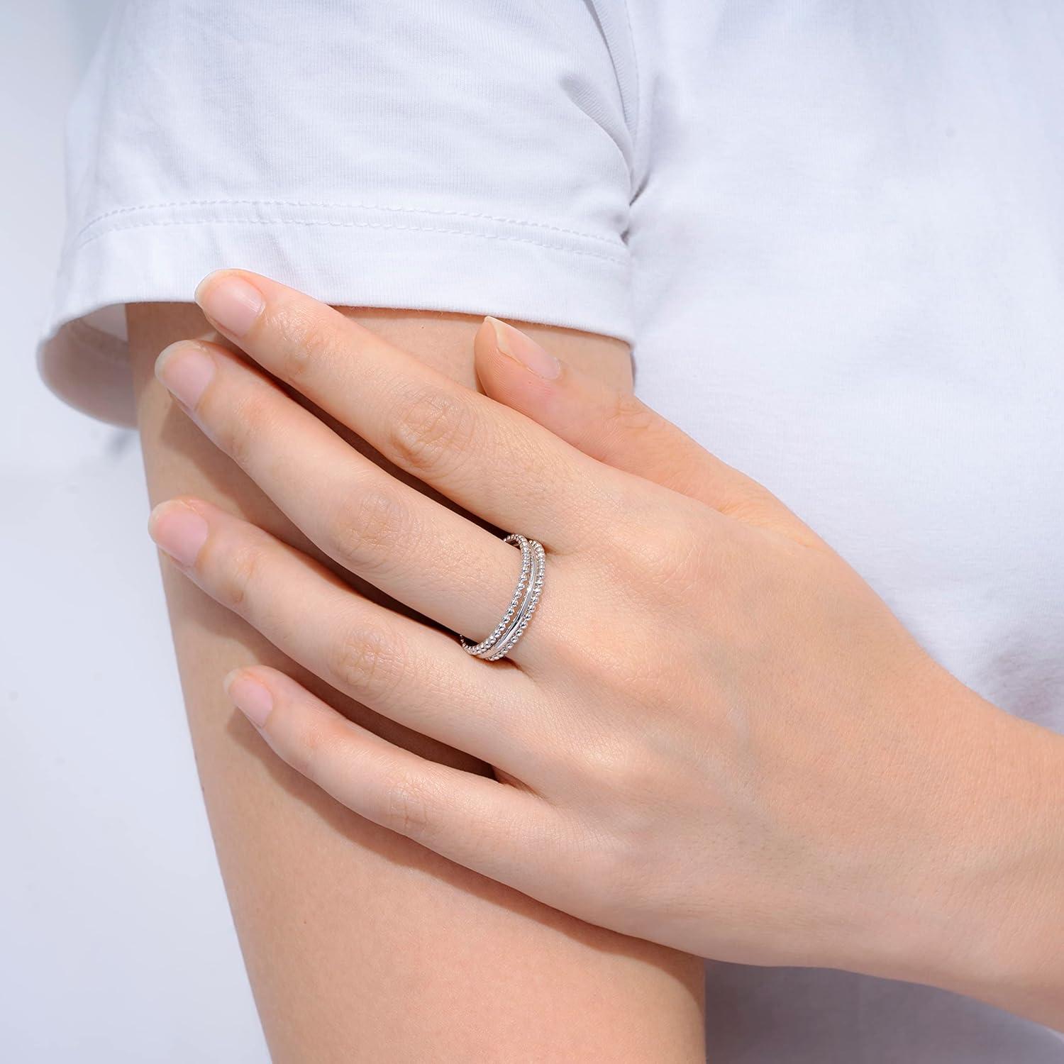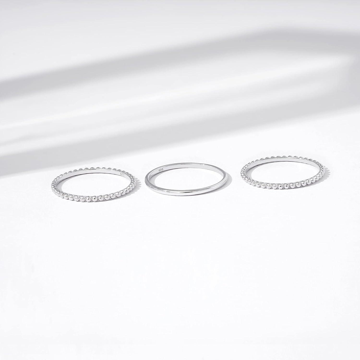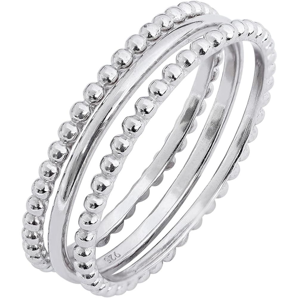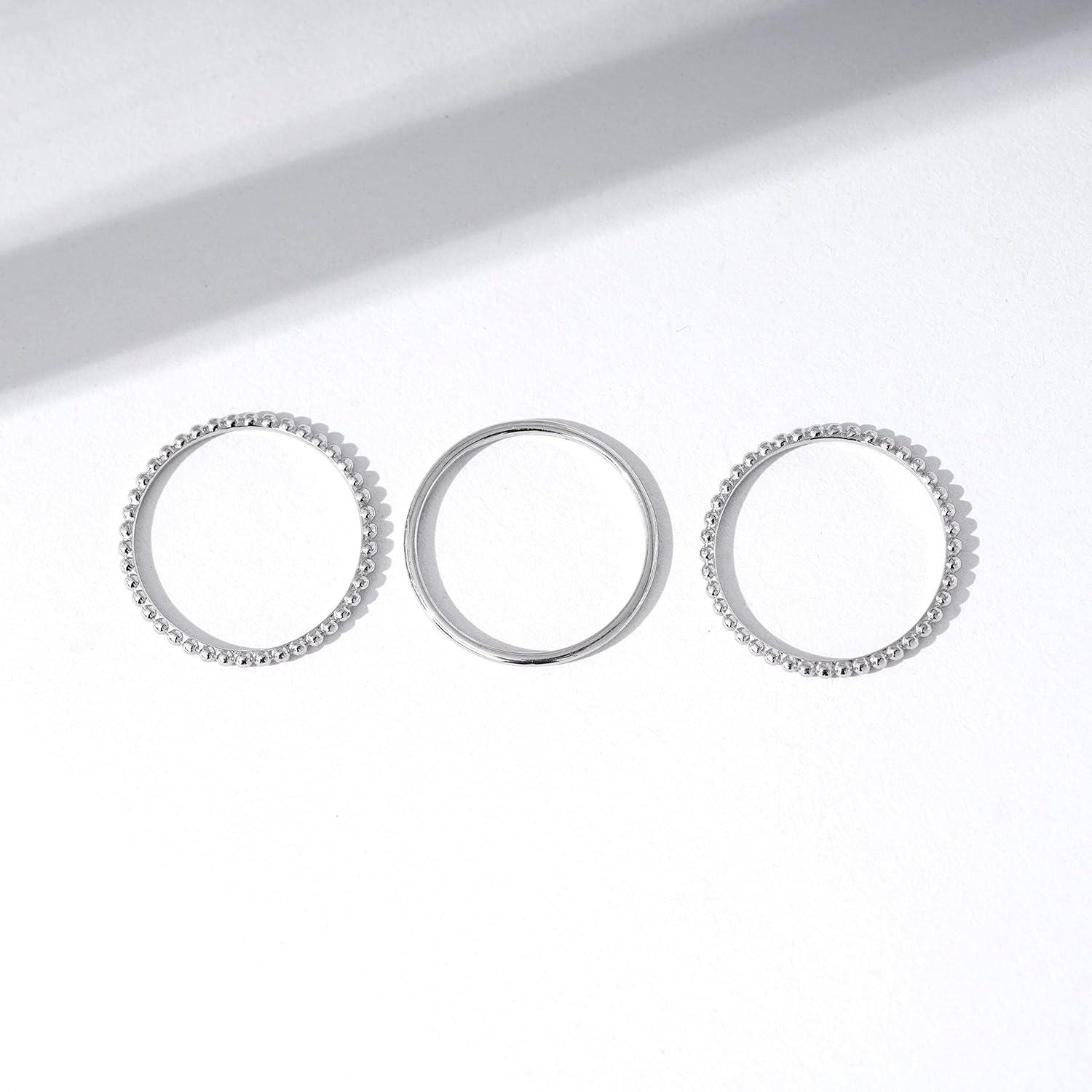 Amazon Essentials 14K Gold or Rhodium Plated Sterling Silver Stacking Ring Set of 3(Rhodium)