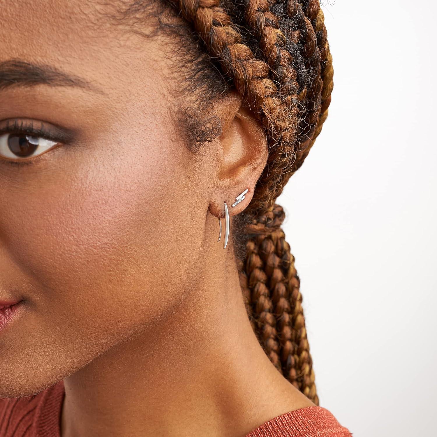Amazon Essentials 14K Gold or Rhodium Plated Stud Earrings Set of 2(Silver)