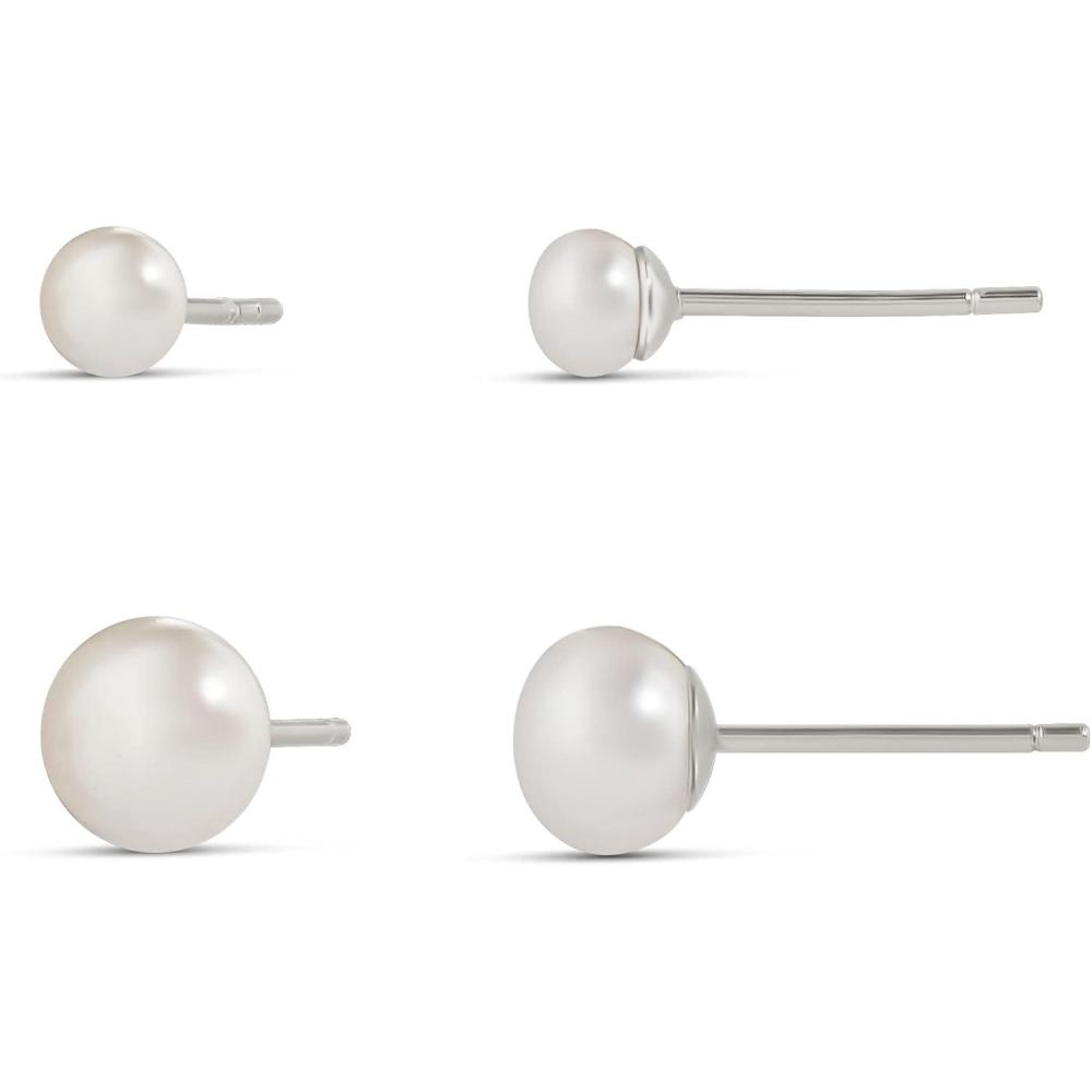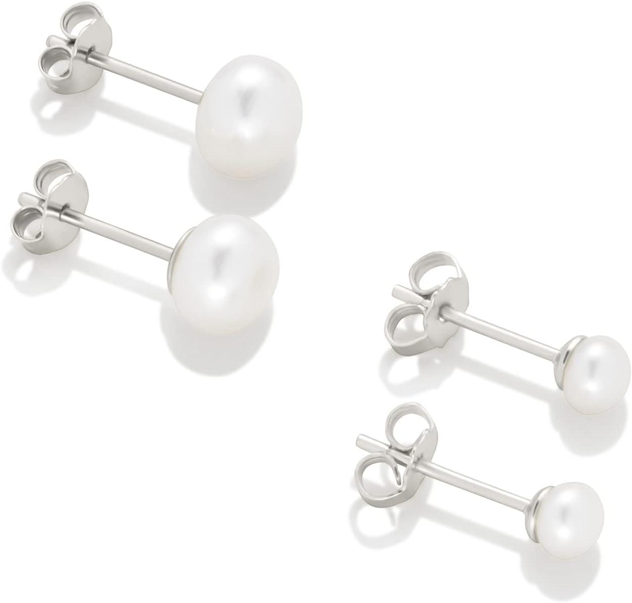 Amazon Essentials 14K Gold or Sterling Silver Freshwater Pearl Stud Earring Set(Silver)