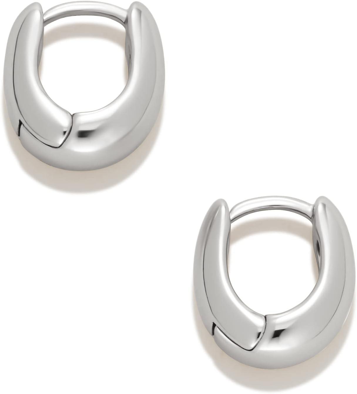 Amazon Essentials 14K Gold or Sterling Silver Plated Teardrop Huggie Hoop 12mm(Silver)