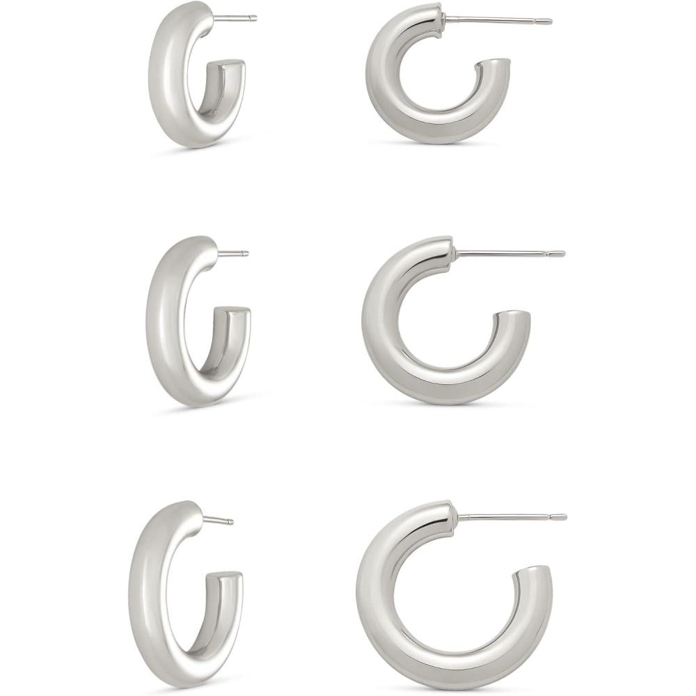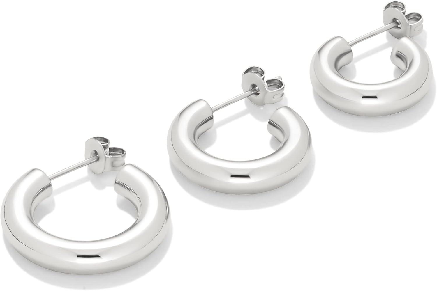 Amazon Essentials 14K Gold or Sterling Silver Plated Thick Tube Hoop Set(Silver)