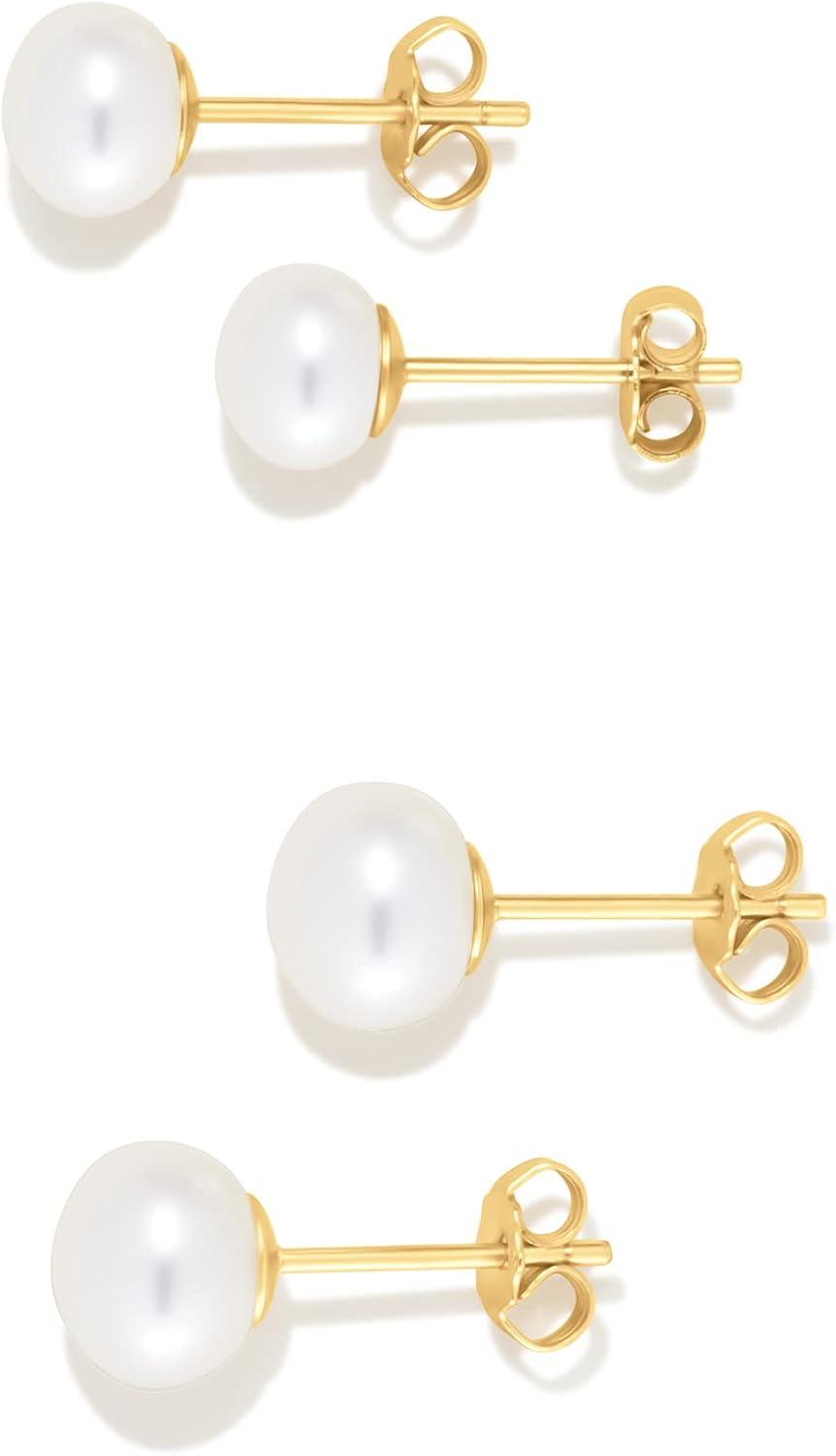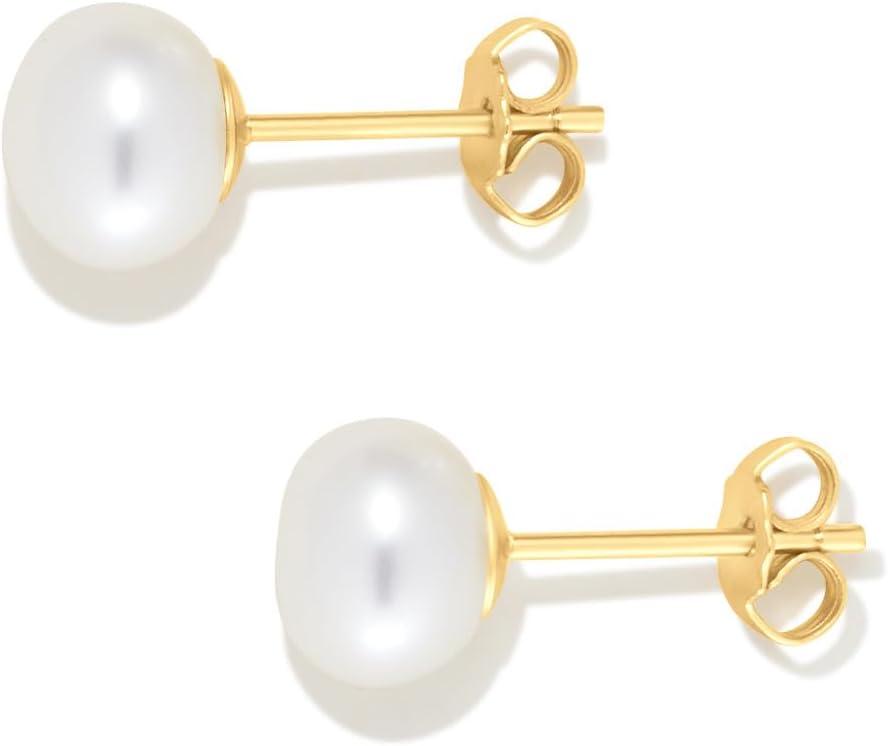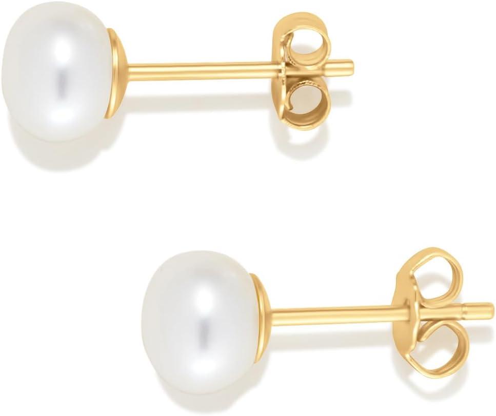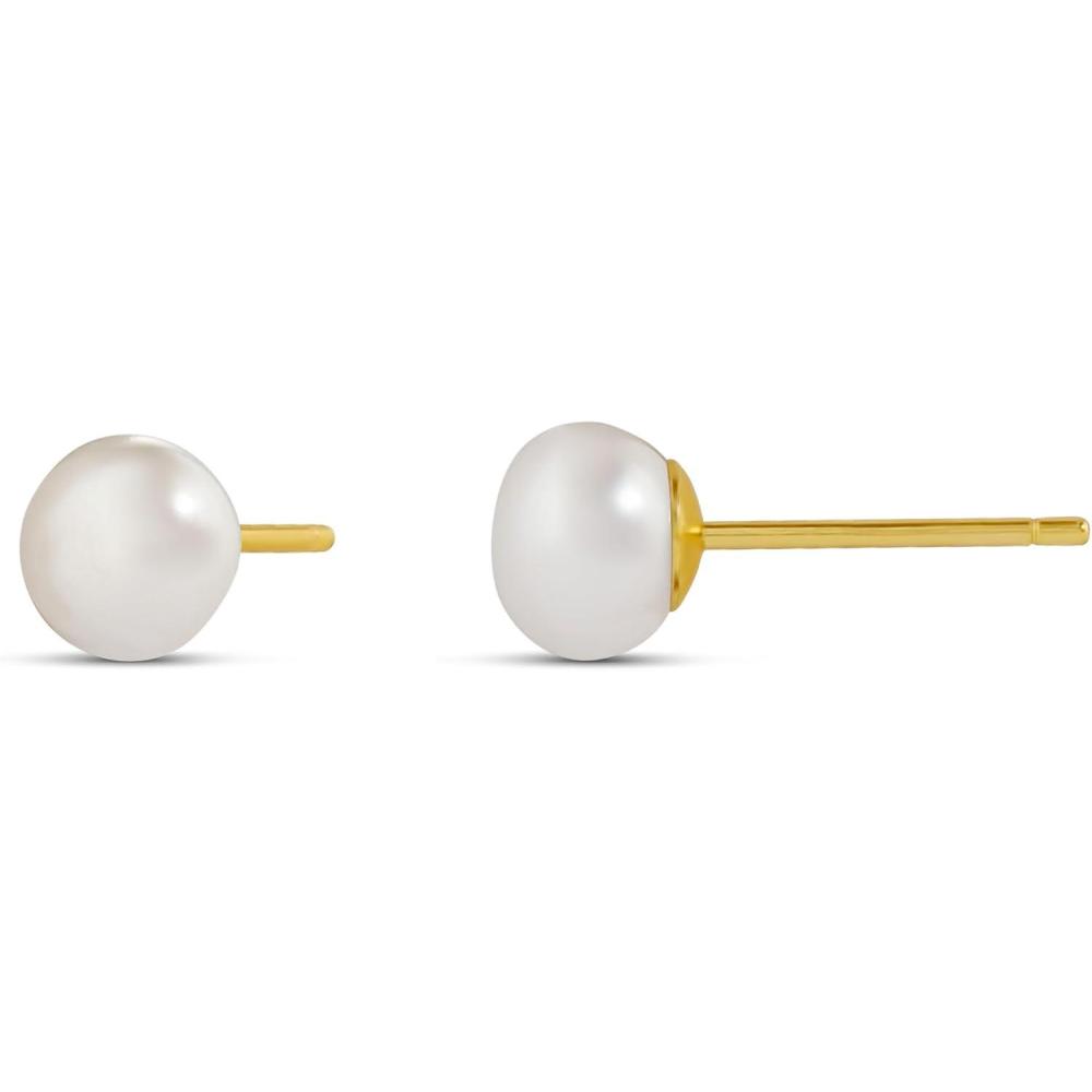 Amazon Essentials 14K Gold Plated Sterling Silver Freshwater Pearl Stud(Yellow Gold)