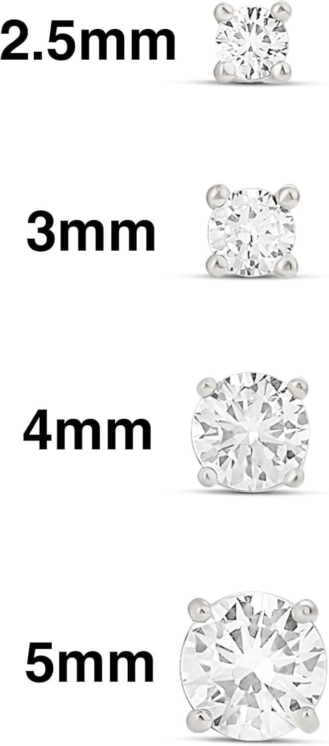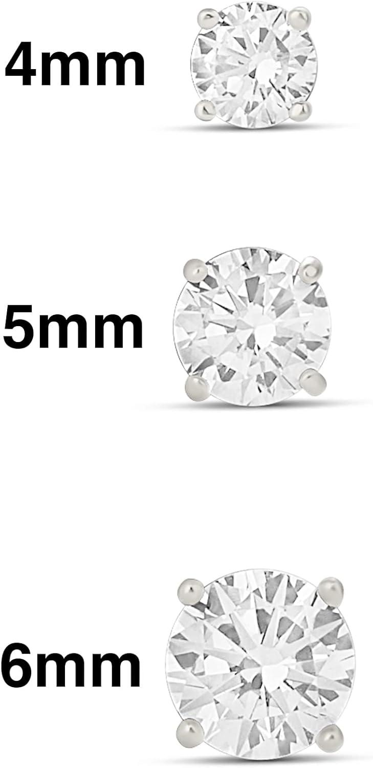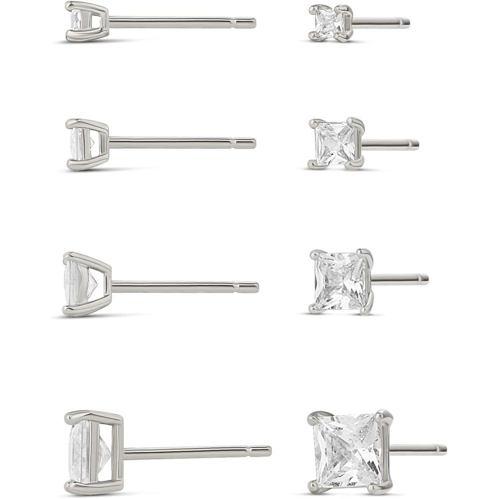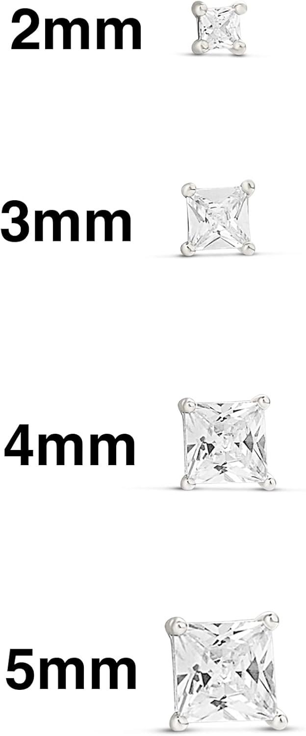 Amazon Essentials 14K Gold Plated Sterling Silver Round or Princess Cut Cubic Zirconia Stud Earring Set(Silver)