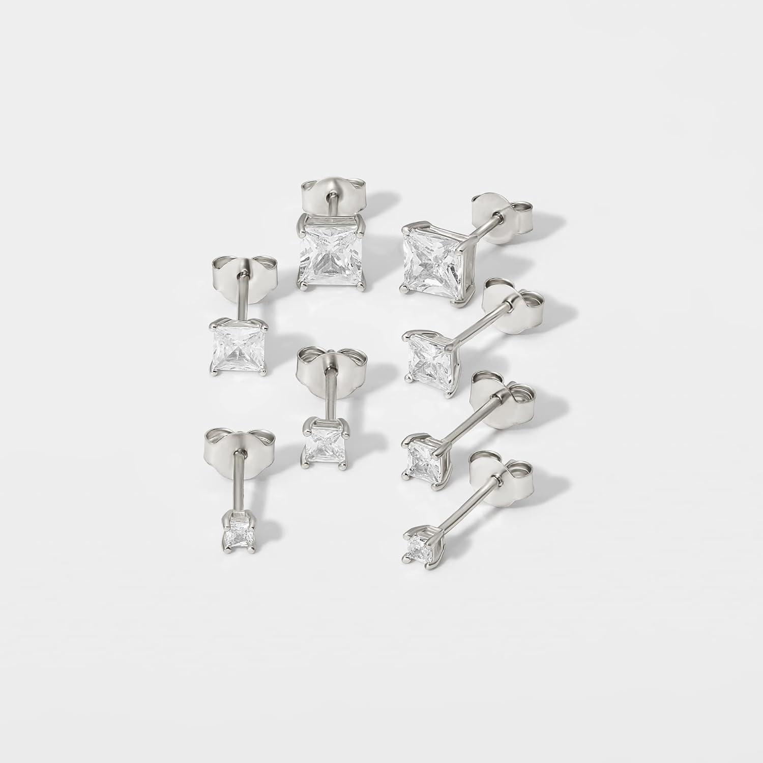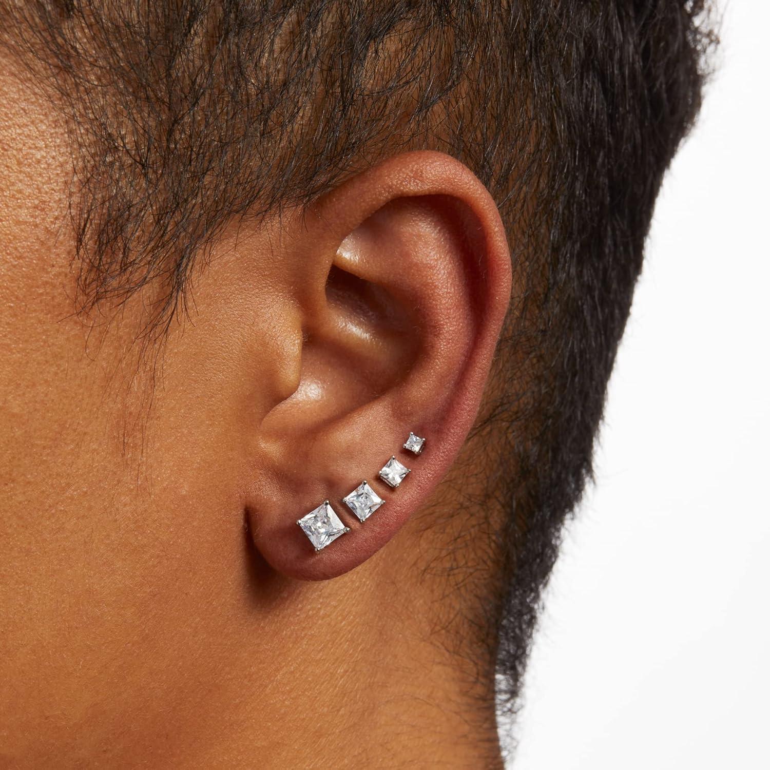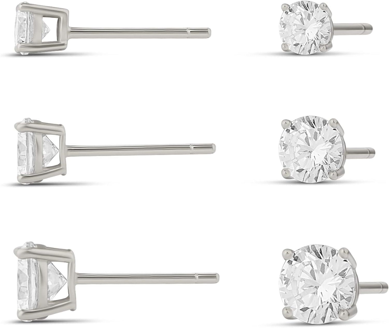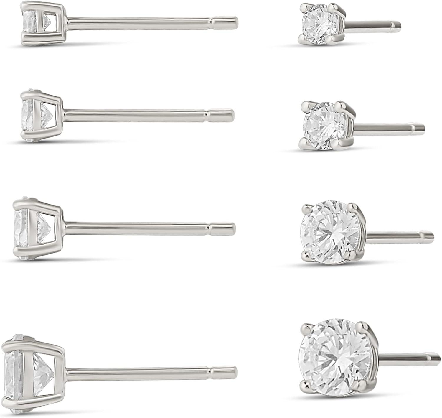 Amazon Essentials 14K Gold Plated Sterling Silver Round or Princess Cut Cubic Zirconia Stud Earring Set(Silver)