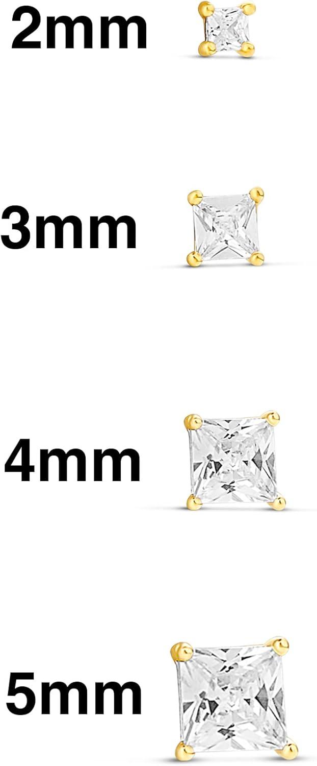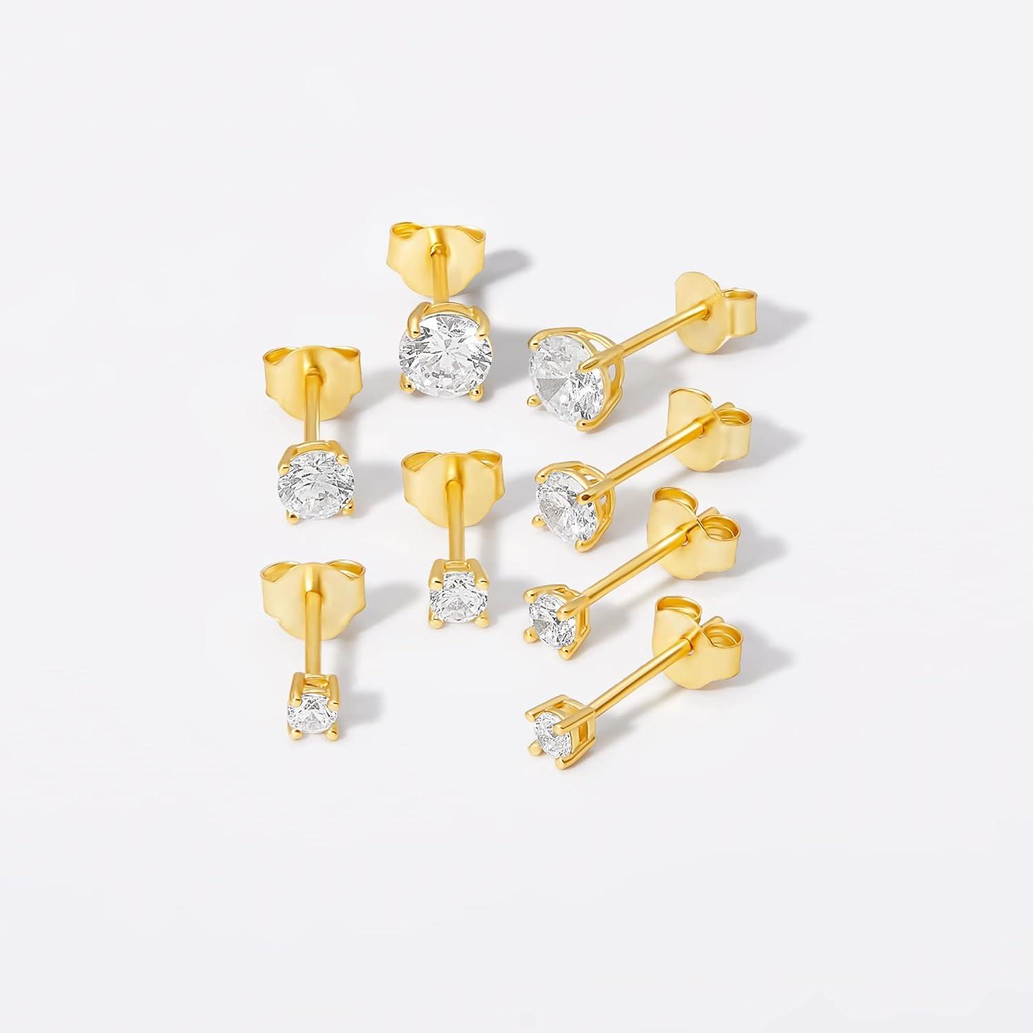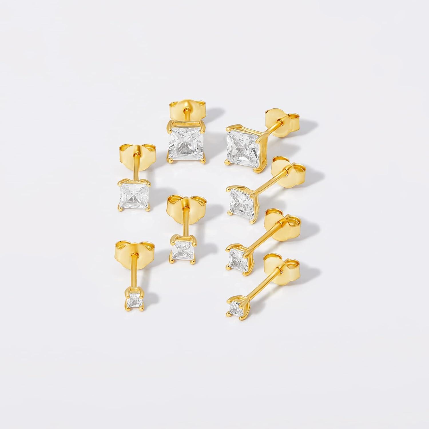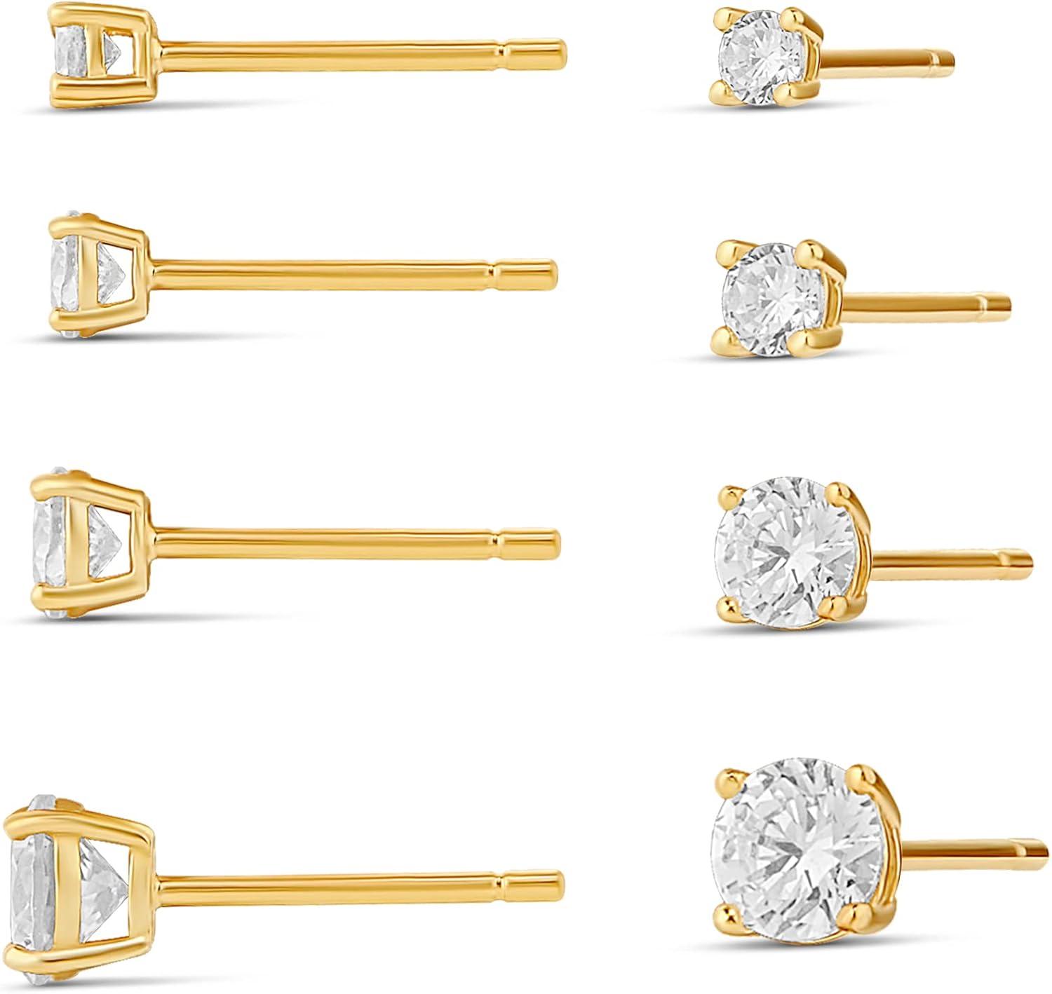 Amazon Essentials 14K Gold Plated Sterling Silver Round or Princess Cut Cubic Zirconia Stud Earring Set(Yellow Gold)