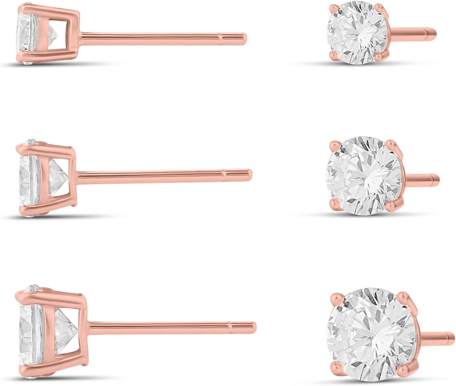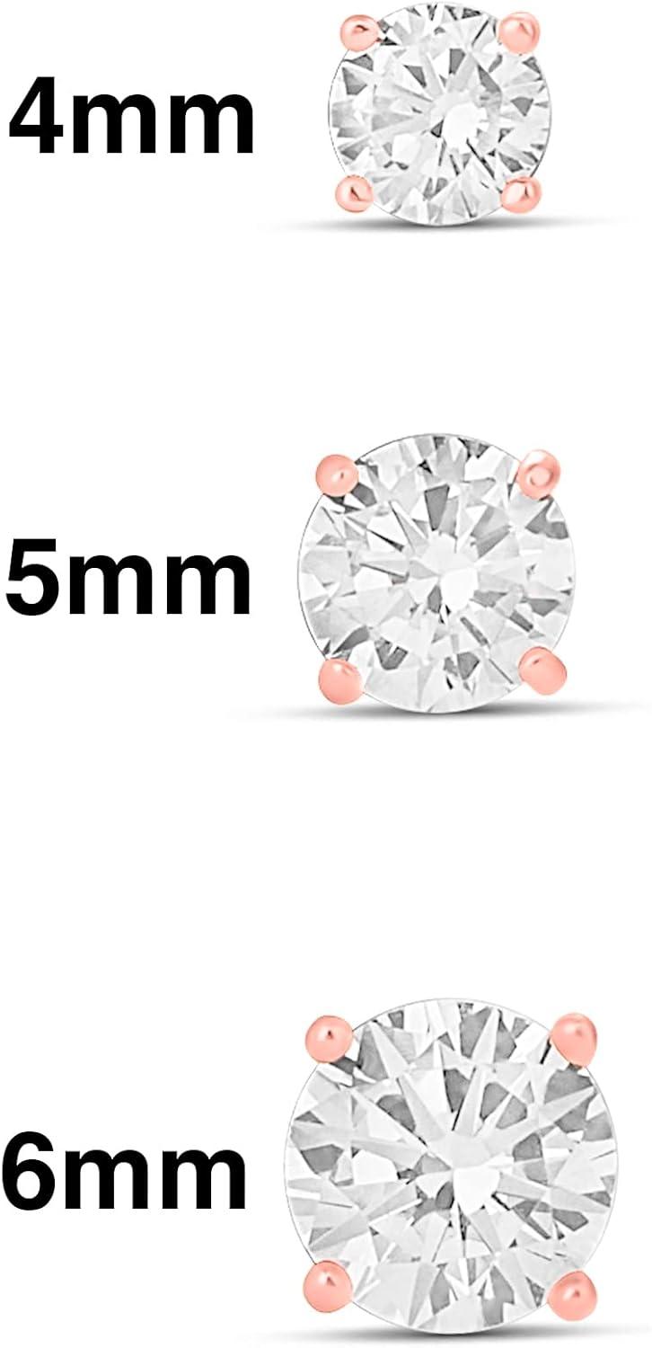 Amazon Essentials 14K Gold Plated Sterling Silver Round or Princess Cut Cubic Zirconia Stud Earring Set(Silver)