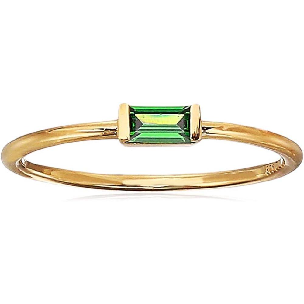 Amazon Essentials 18K Yellow Gold Plated Sterling Silver Cubic Zirconia Fashion Stackable Ring (previously Amazon Collection)(Emerald Green May)