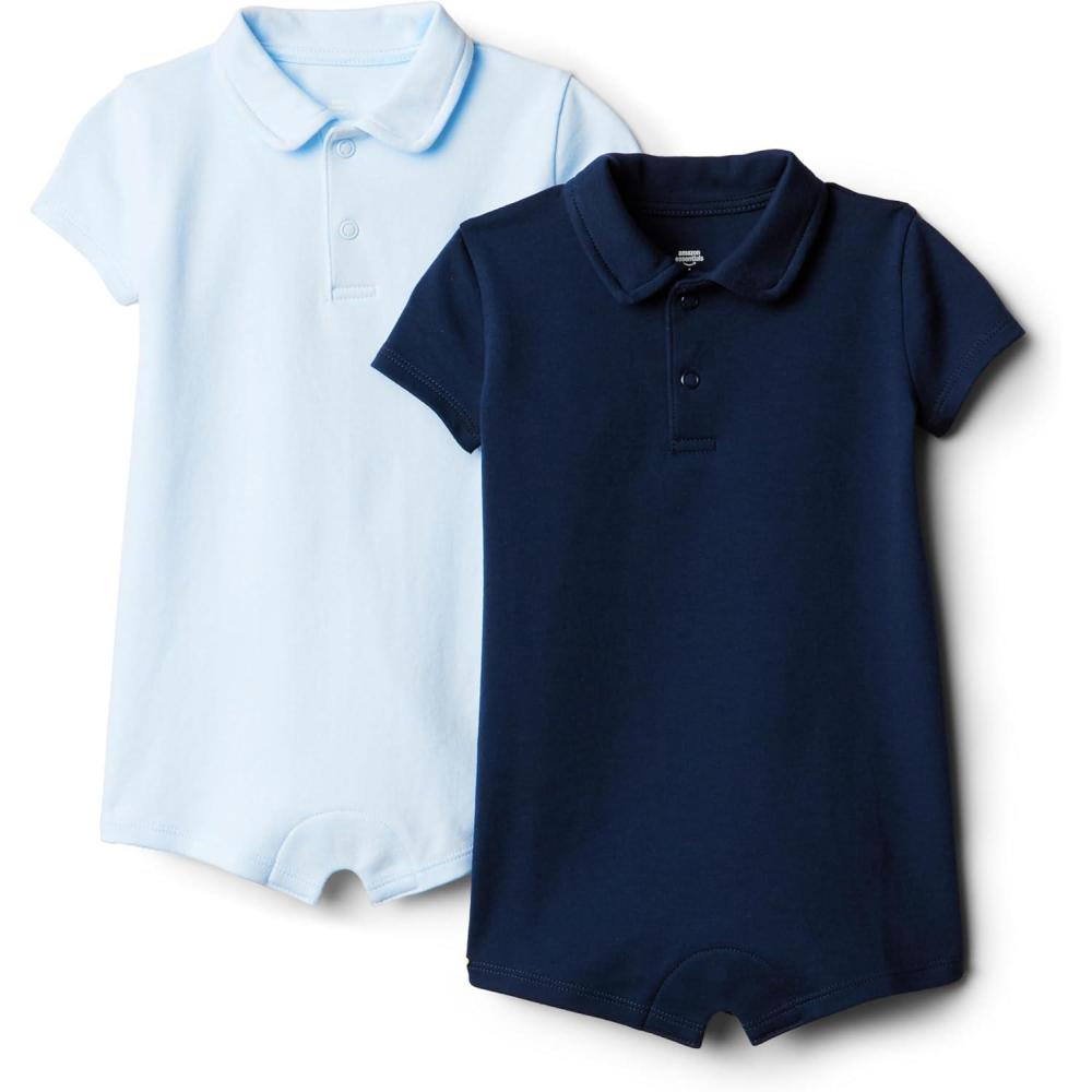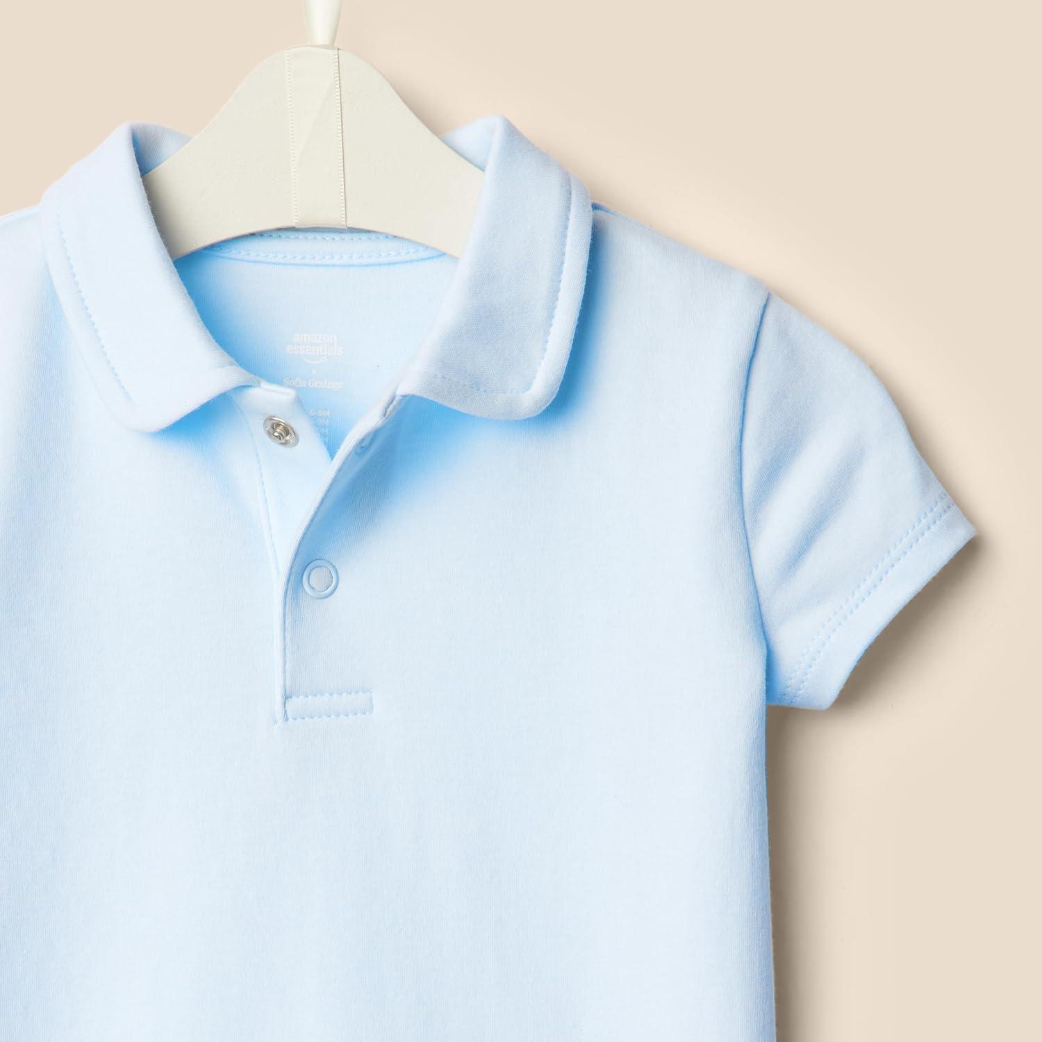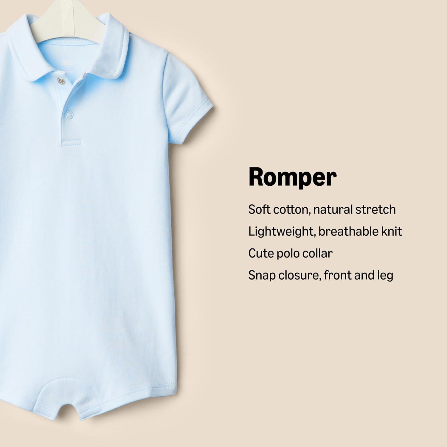 Amazon Essentials baby-boys Short Sleeve Romper(Light Blue/Navy)