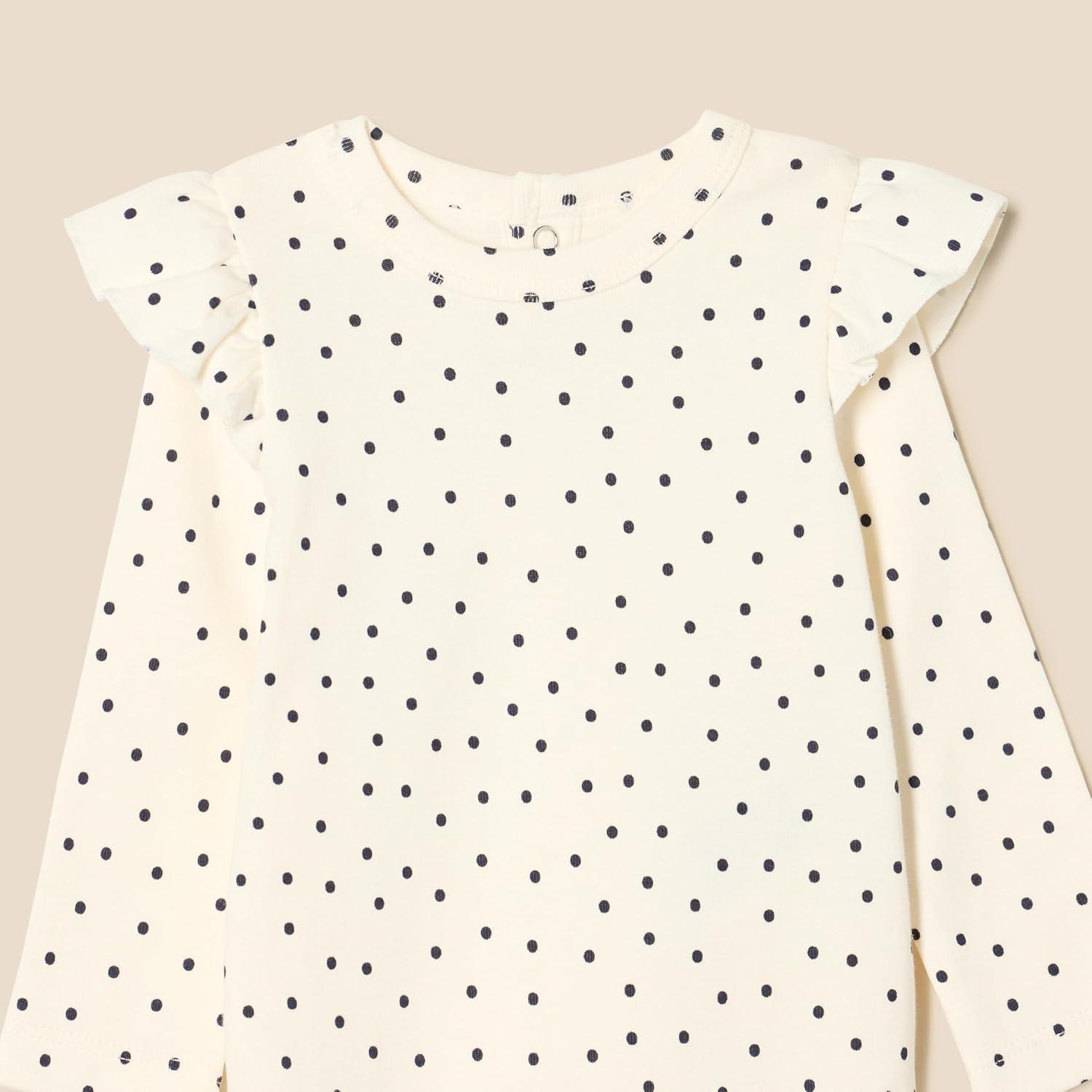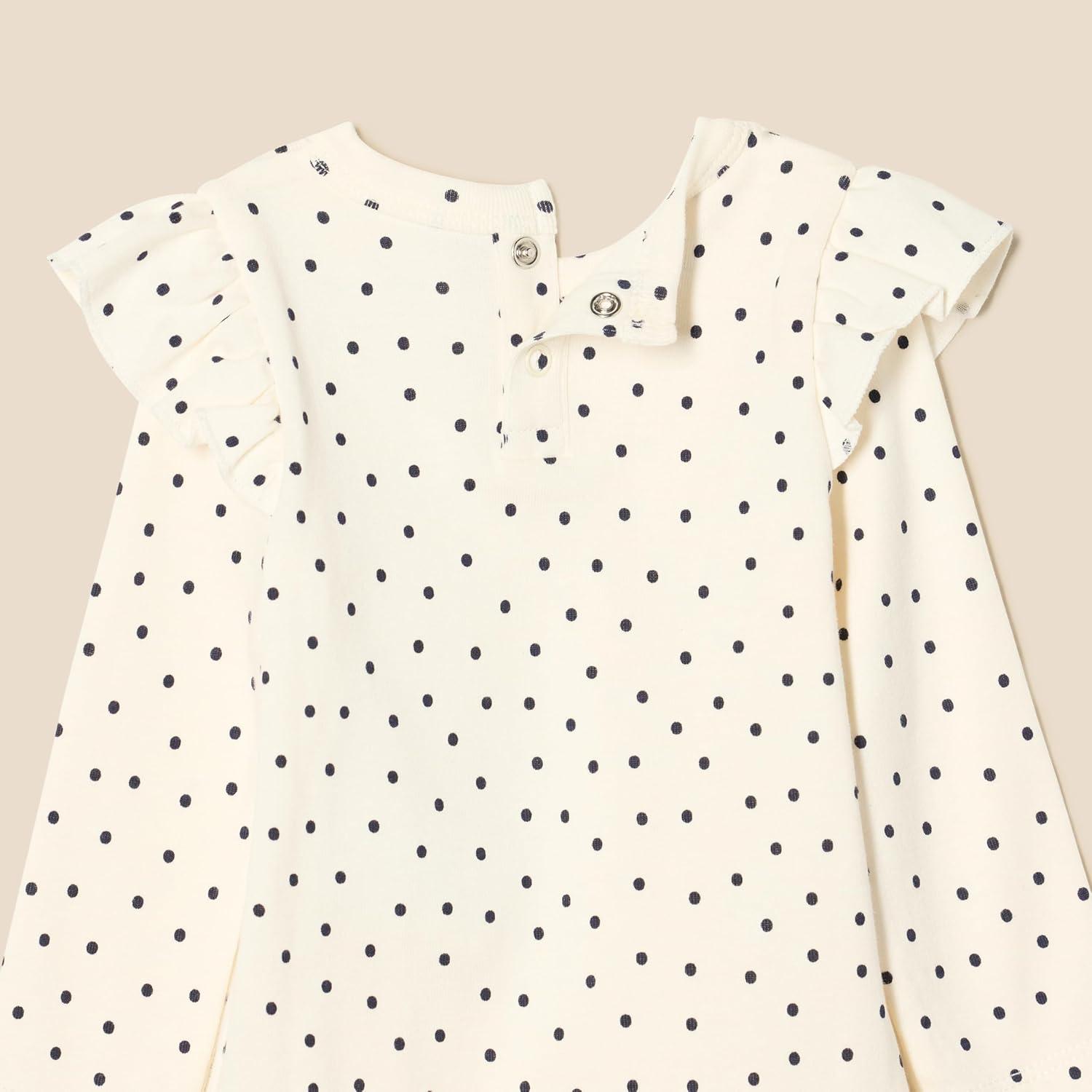 Amazon Essentials Baby Girls’ Long-Sleeved Ruffle Bodysuits, Pack of 2(Navy/Dots)