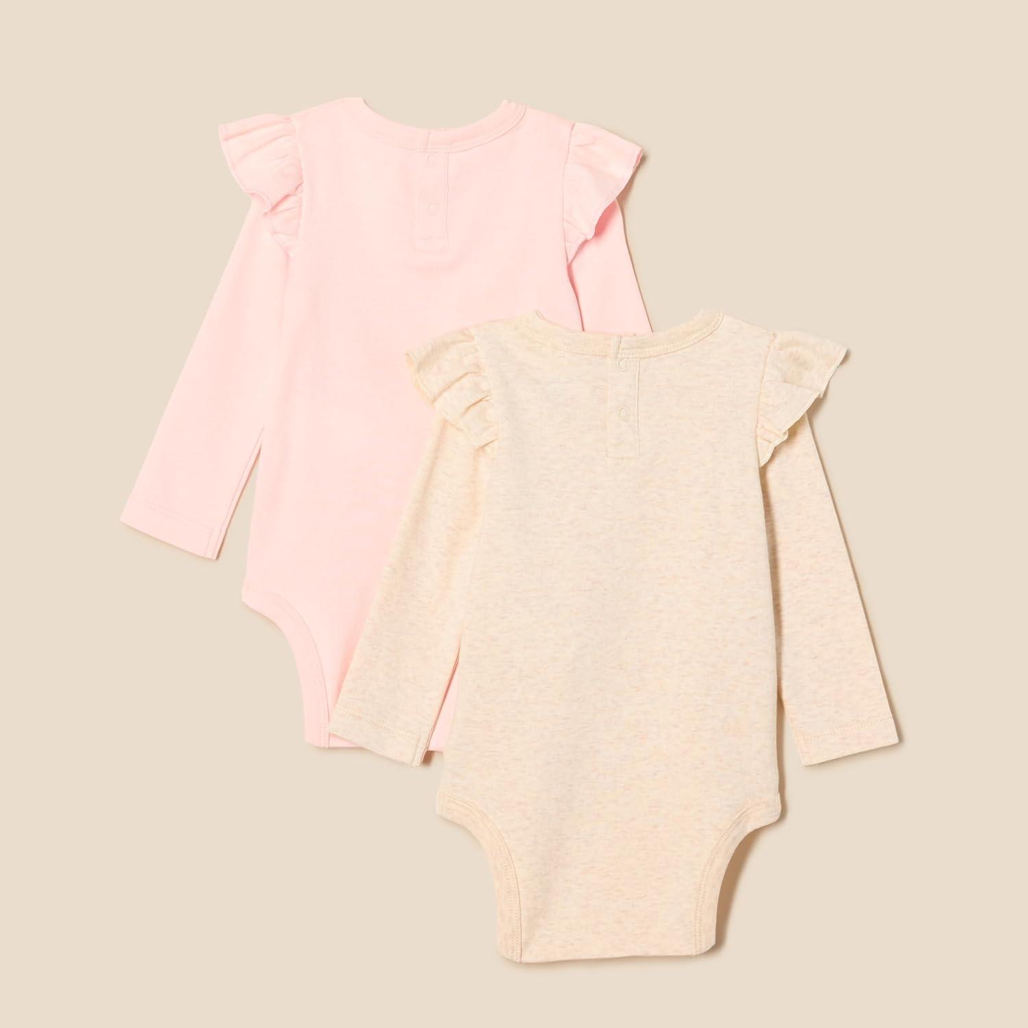 Amazon Essentials Baby Girls' Long-Sleeved Ruffle Bodysuits, Pack of 2(Oatmeal Heather/Pale Pink)