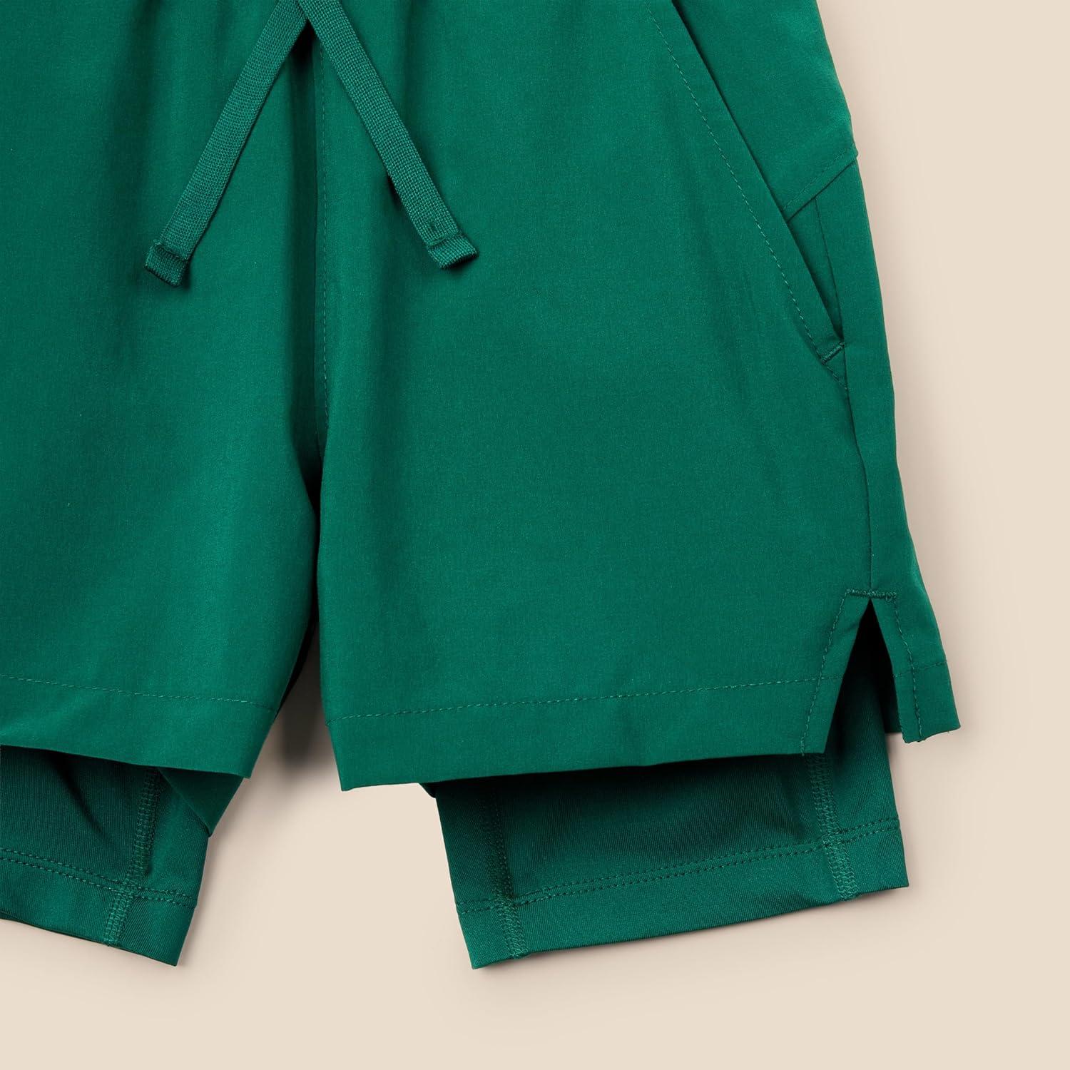 Amazon Essentials Boys’ Active Performance Stretch Woven Athletic Training Shorts with Liner(Dark Green)