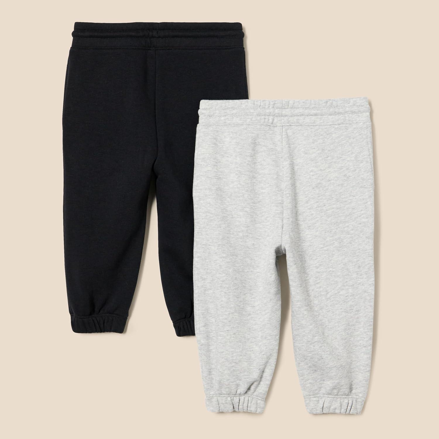 Amazon Essentials Boys and Toddlers' Cotton Joggers, Pack of 2(Black/Light Grey Heather)