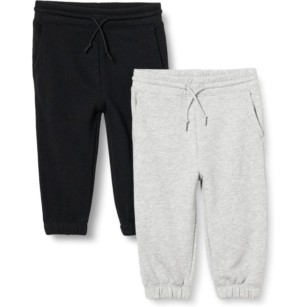 Amazon Essentials Boys and Toddlers’ Cotton Joggers, Pack of 2(Black/Light Grey Heather)
