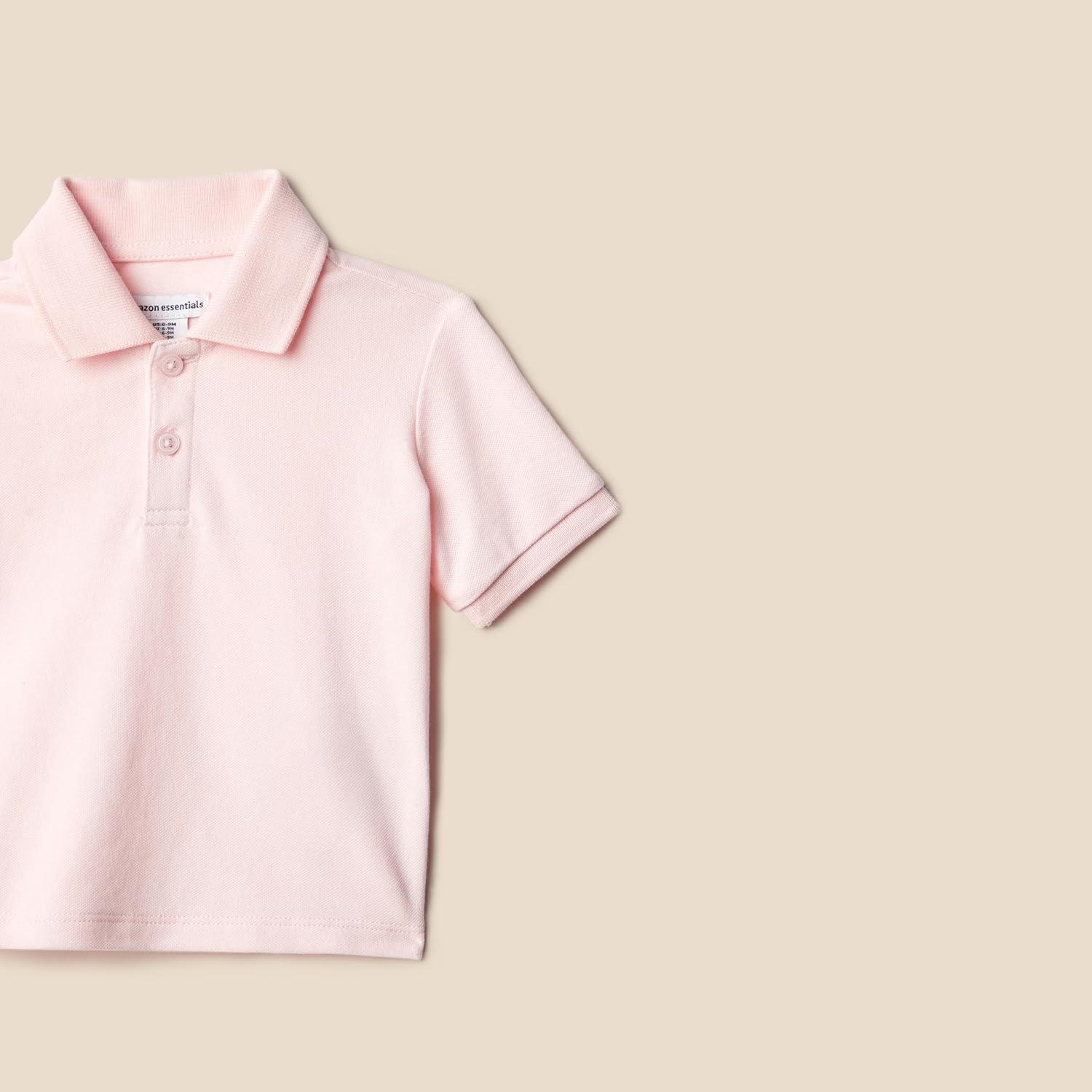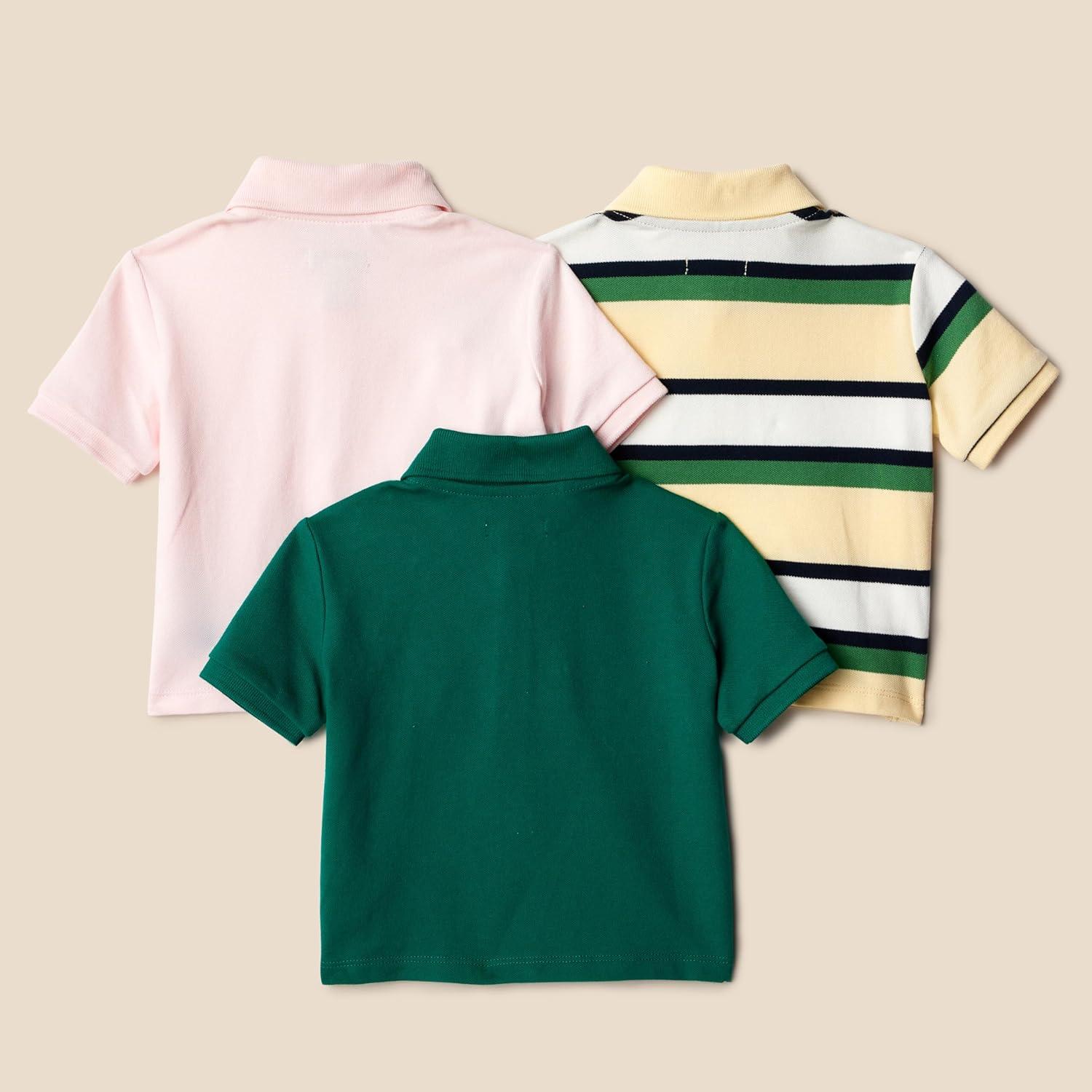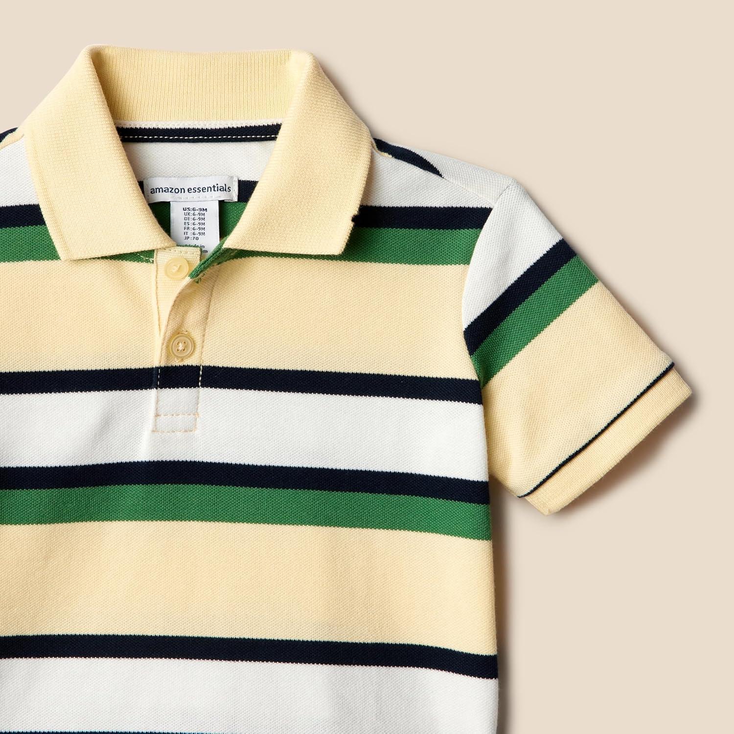 Amazon Essentials Boys and Toddlers’ Cotton Spandex Pique Polo Shirt, Pack of 3(Dark Green/Pale Pink/Block Stripe)