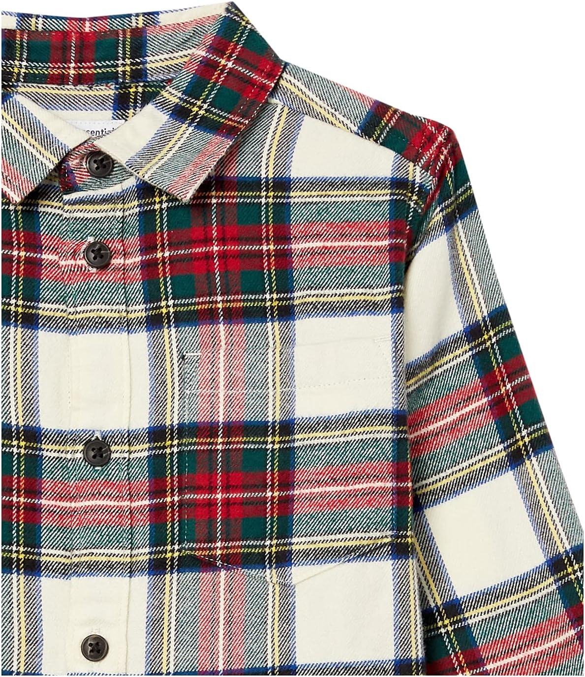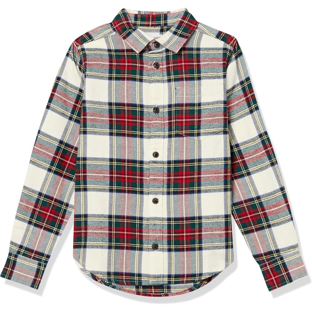Amazon Essentials Boys and Toddlers’ Flannel Button Down Shirt(Green Red Plaid)
