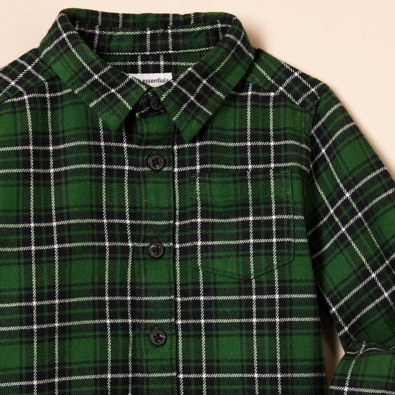Amazon Essentials Boys and Toddlers’ Flannel Button Down Shirt(Green)