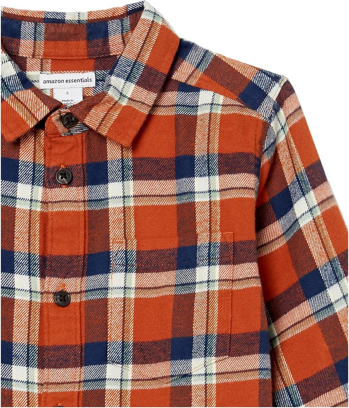 Amazon Essentials Boys and Toddlers' Flannel Button Down Shirt(Navy Orange Plaid)