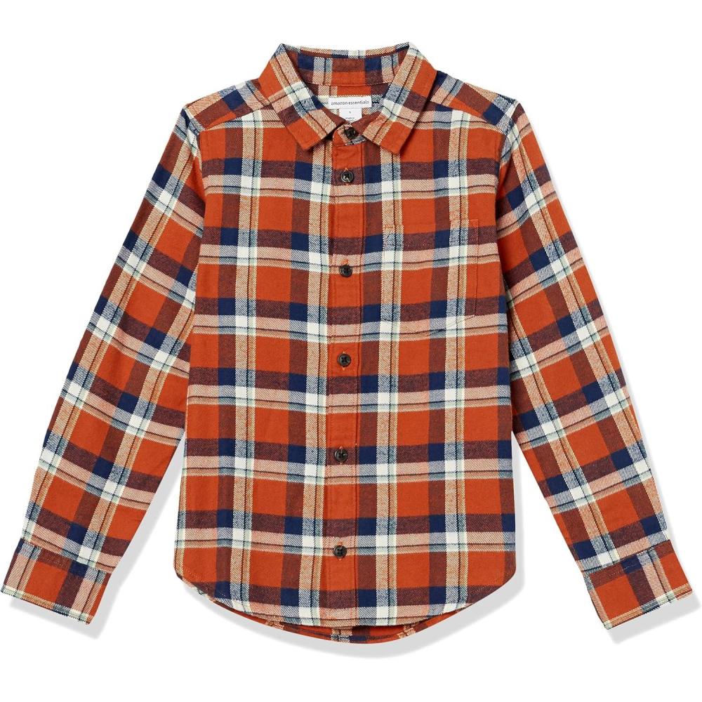 Amazon Essentials Boys and Toddlers’ Flannel Button Down Shirt(Navy Orange Plaid)