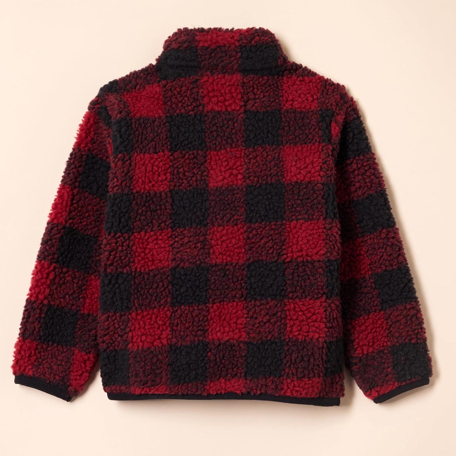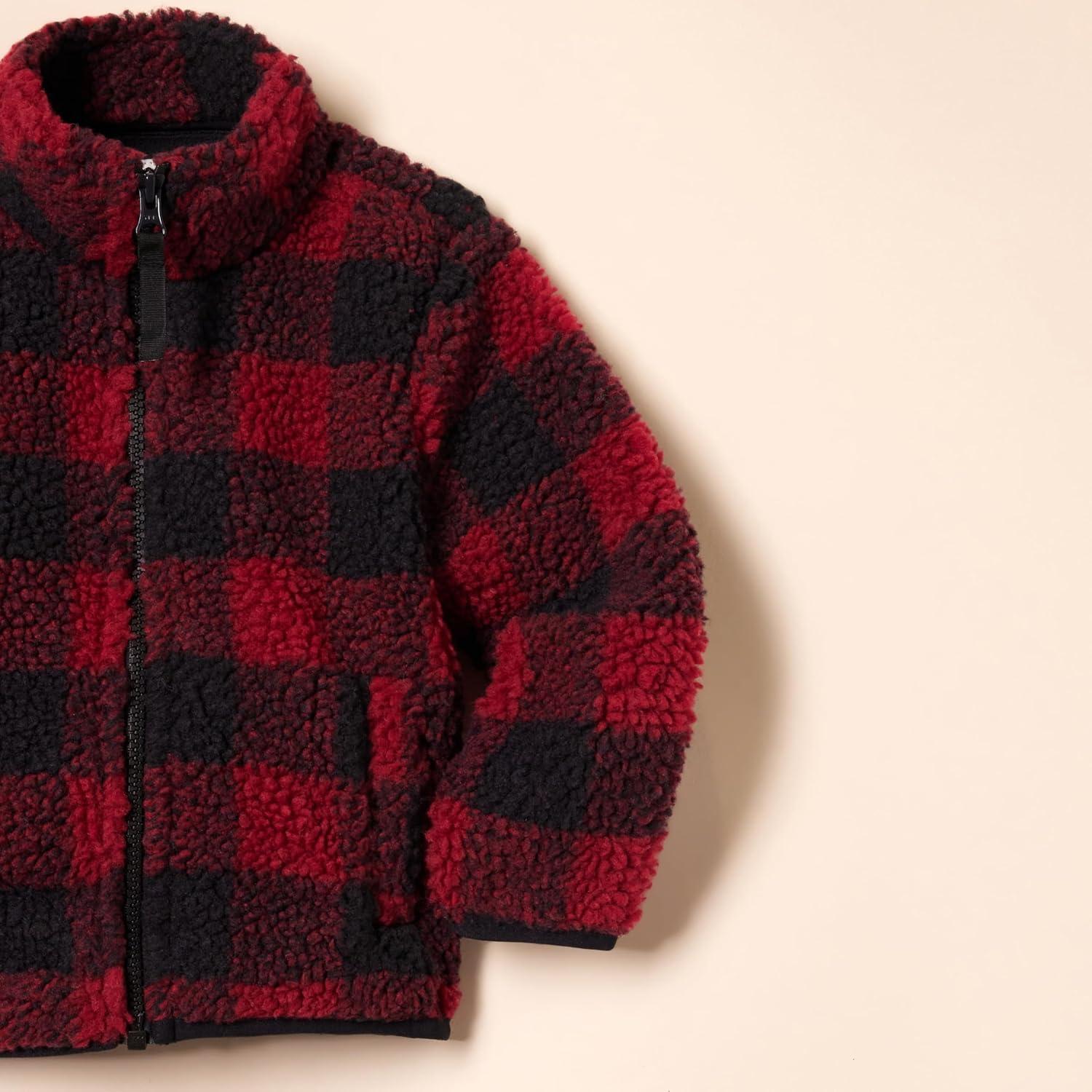 Amazon Essentials Boys and Toddlers’ Fleece Lined Sherpa Full-Zip Jacket(Red Exploded Buffalo Check)