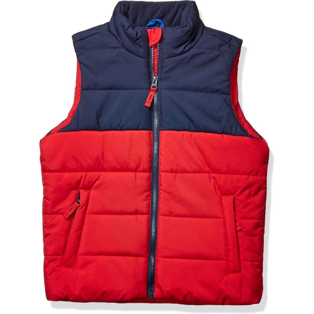 Amazon Essentials Boys and Toddlers’ Heavyweight Outerwear Puffer Vest(Navy Red Color Block)