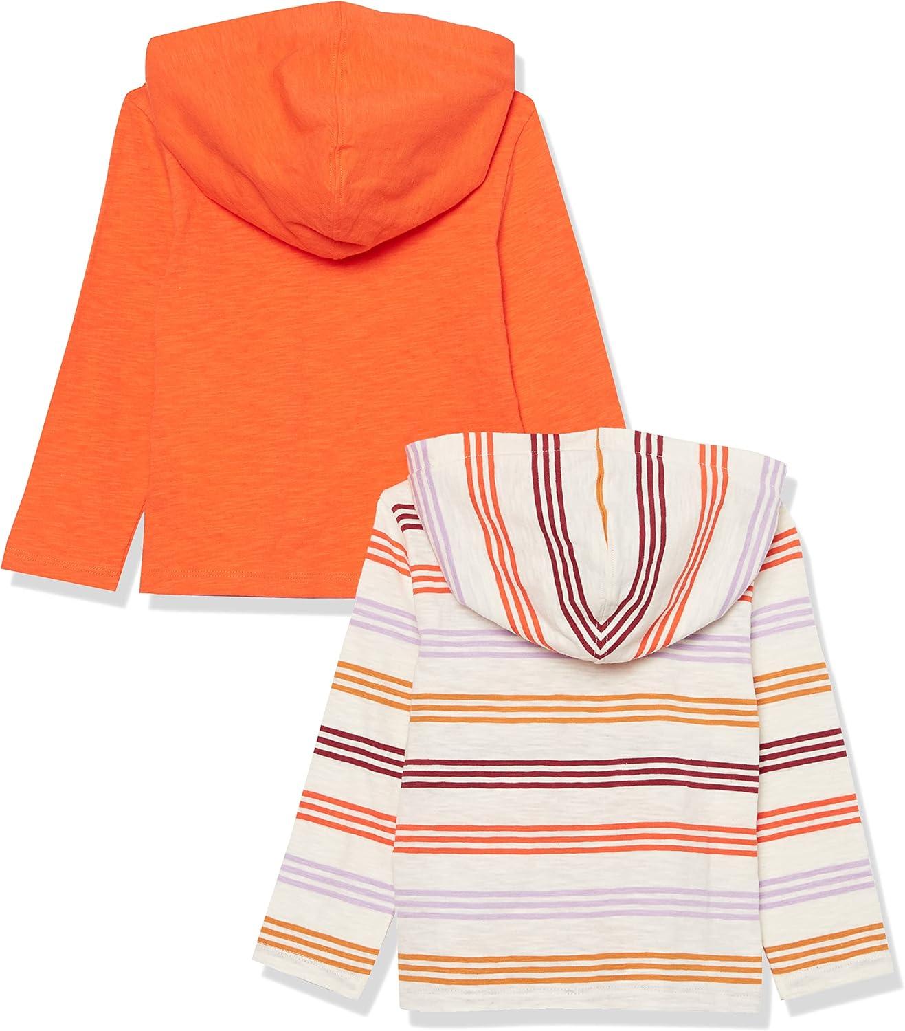 Amazon Essentials Boys and Toddlers’ Lightweight Long-Sleeve Hooded T-Shirt, Pack of 2(Beige Stripe/Orange)
