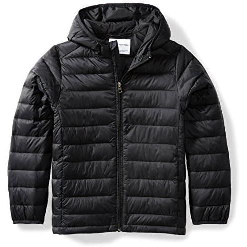 Amazon Essentials Boys and Toddlers’ Lightweight Water-Resistant Packable Hooded Puffer Jacket(Black)
