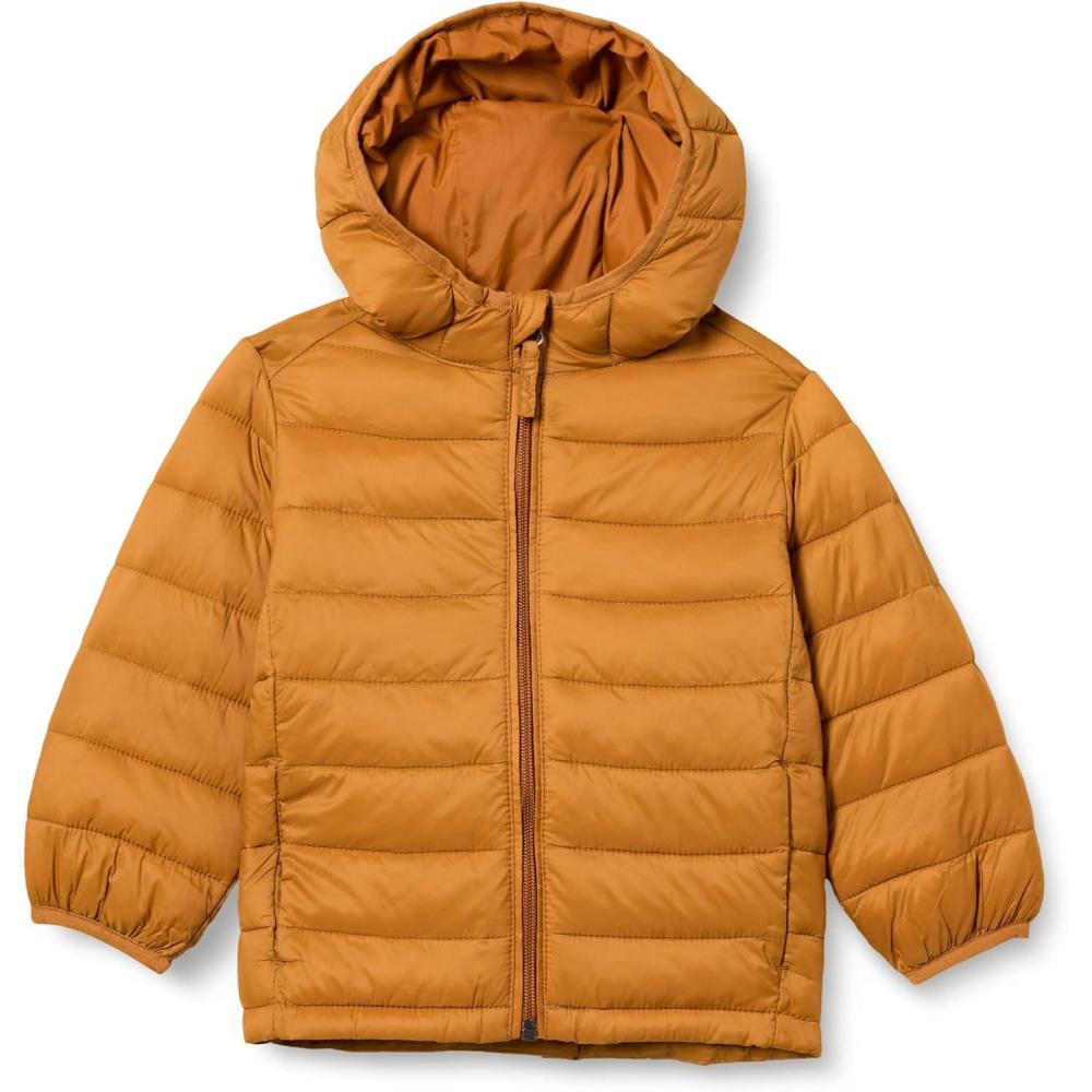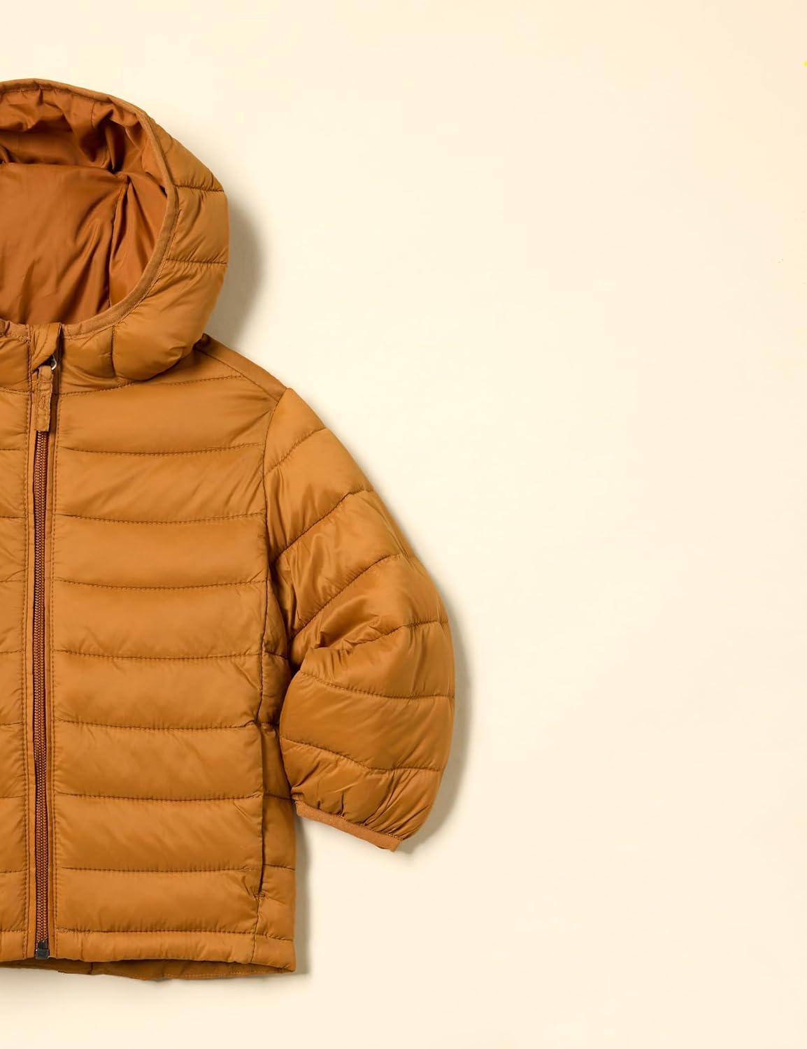 Amazon Essentials Boys and Toddlers’ Lightweight Water-Resistant Packable Hooded Puffer Jacket(Light Brown)