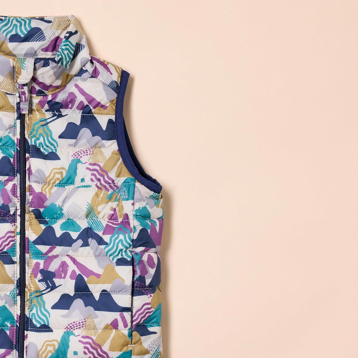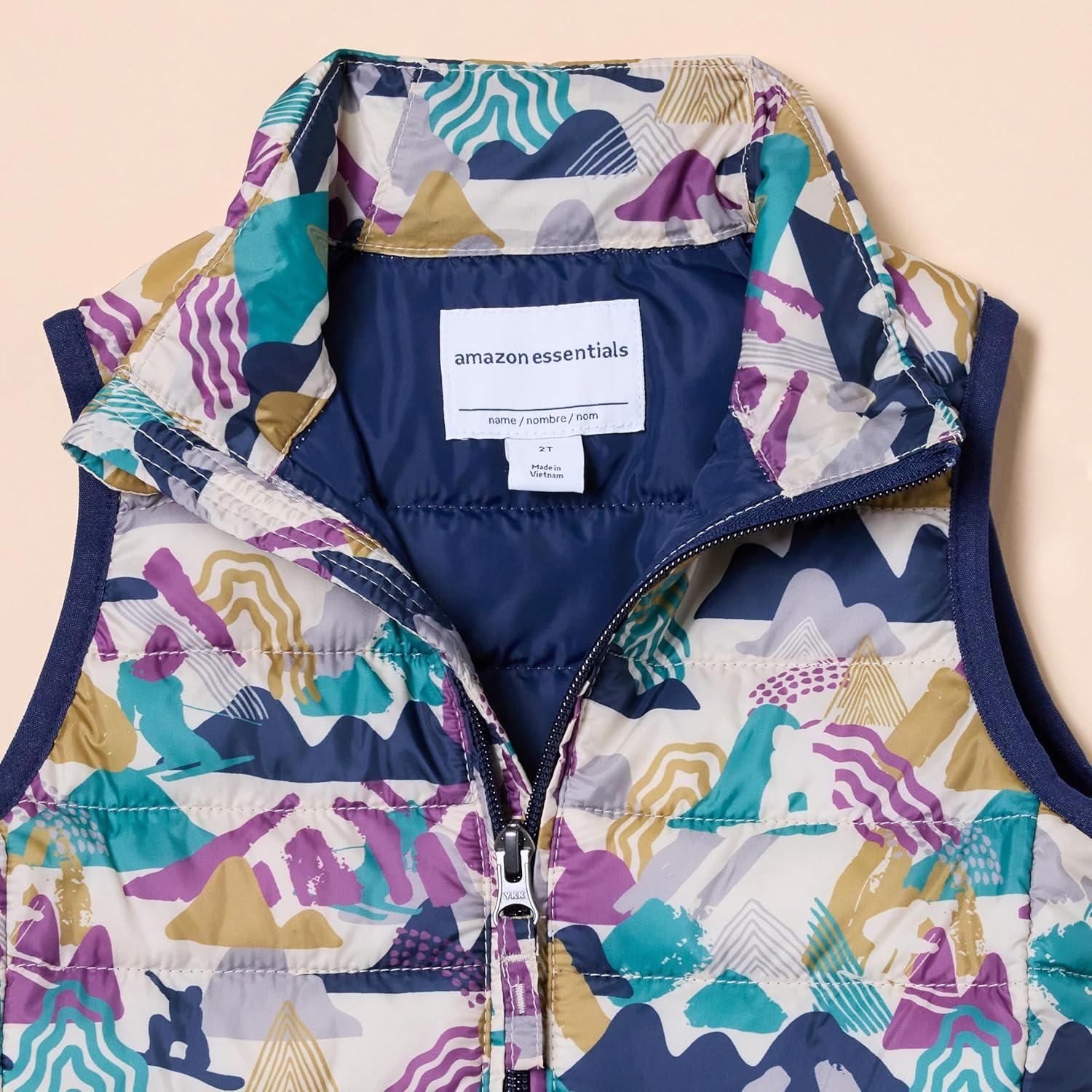 Amazon Essentials Boys and Toddlers’ Lightweight Water-Resistant Packable Hooded Puffer Vest(Ecru Purple Mountain)