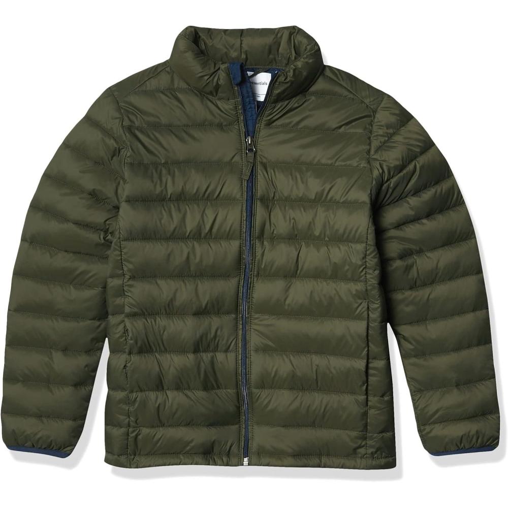Amazon Essentials Boys and Toddlers’ Lightweight Water-Resistant Packable Puffer Jacket(Olive)
