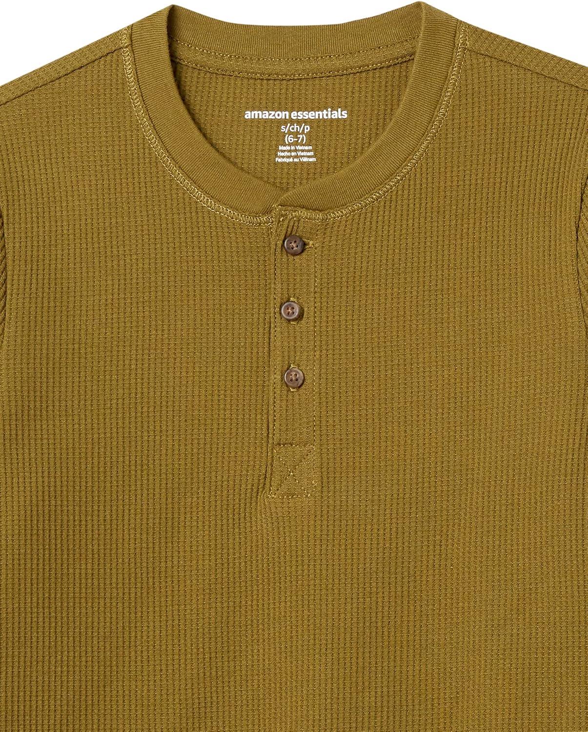 Amazon Essentials Boys and Toddlers’ Long-Sleeve Knit Thermal T-Shirt, Pack of 3(Grey Rugby Stripe/Mustard Yellow/Rust)