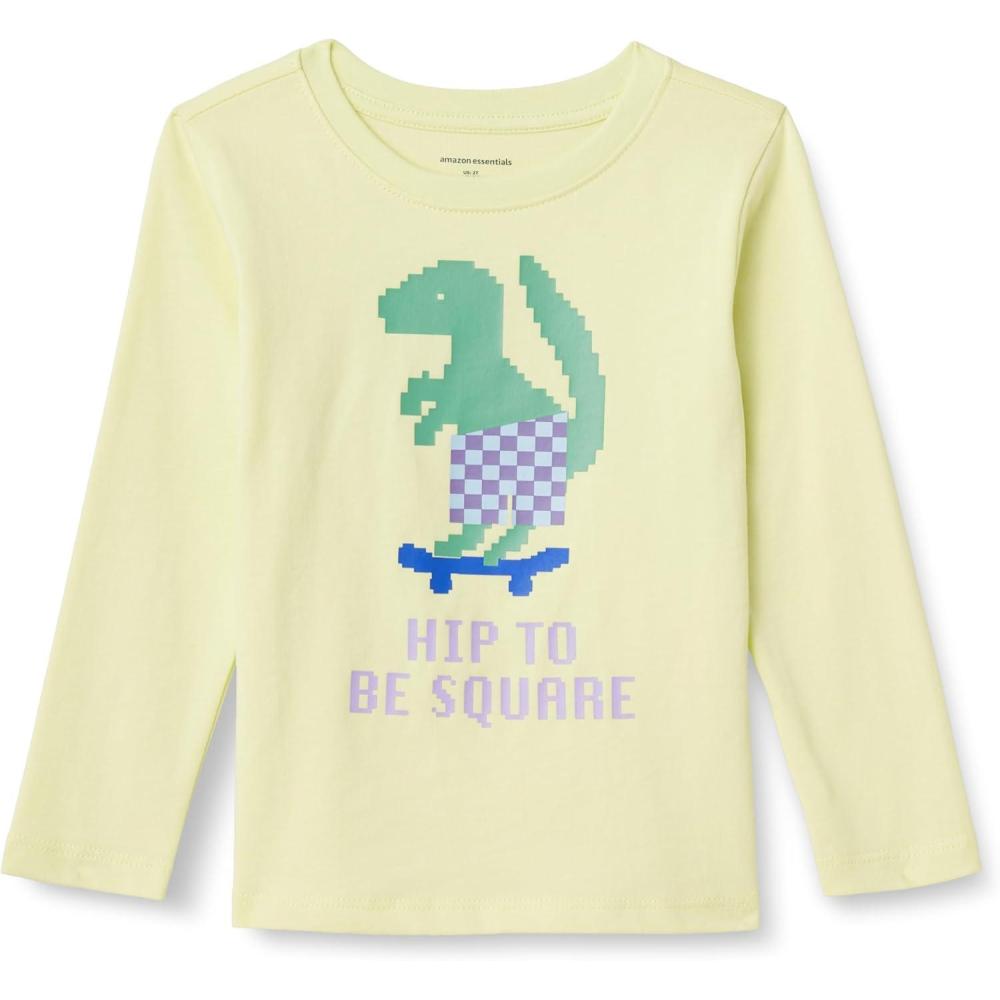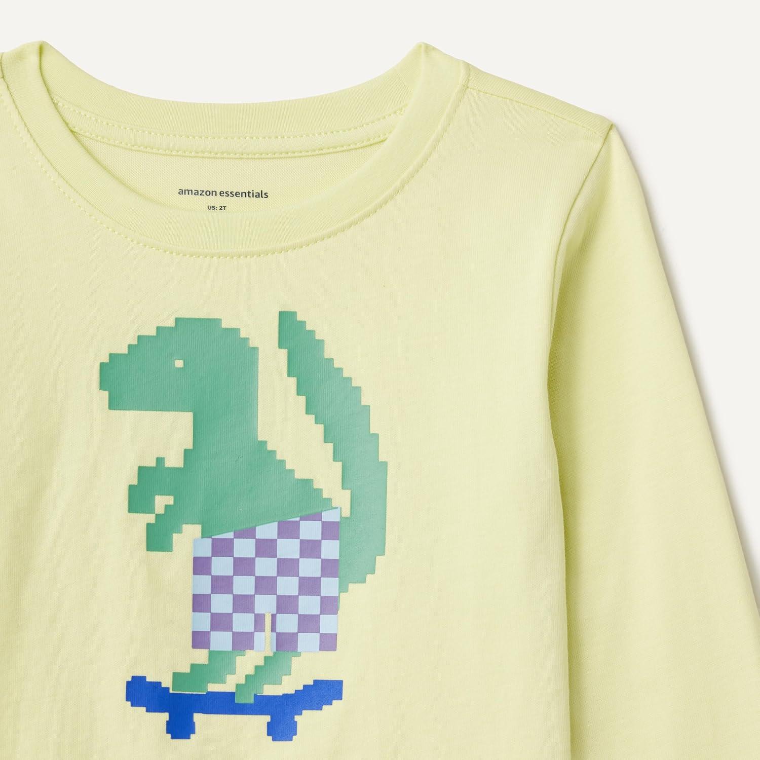 Amazon Essentials Boys and Toddlers’ Long-Sleeve T-Shirts(Pastel Green Pixel Dino)