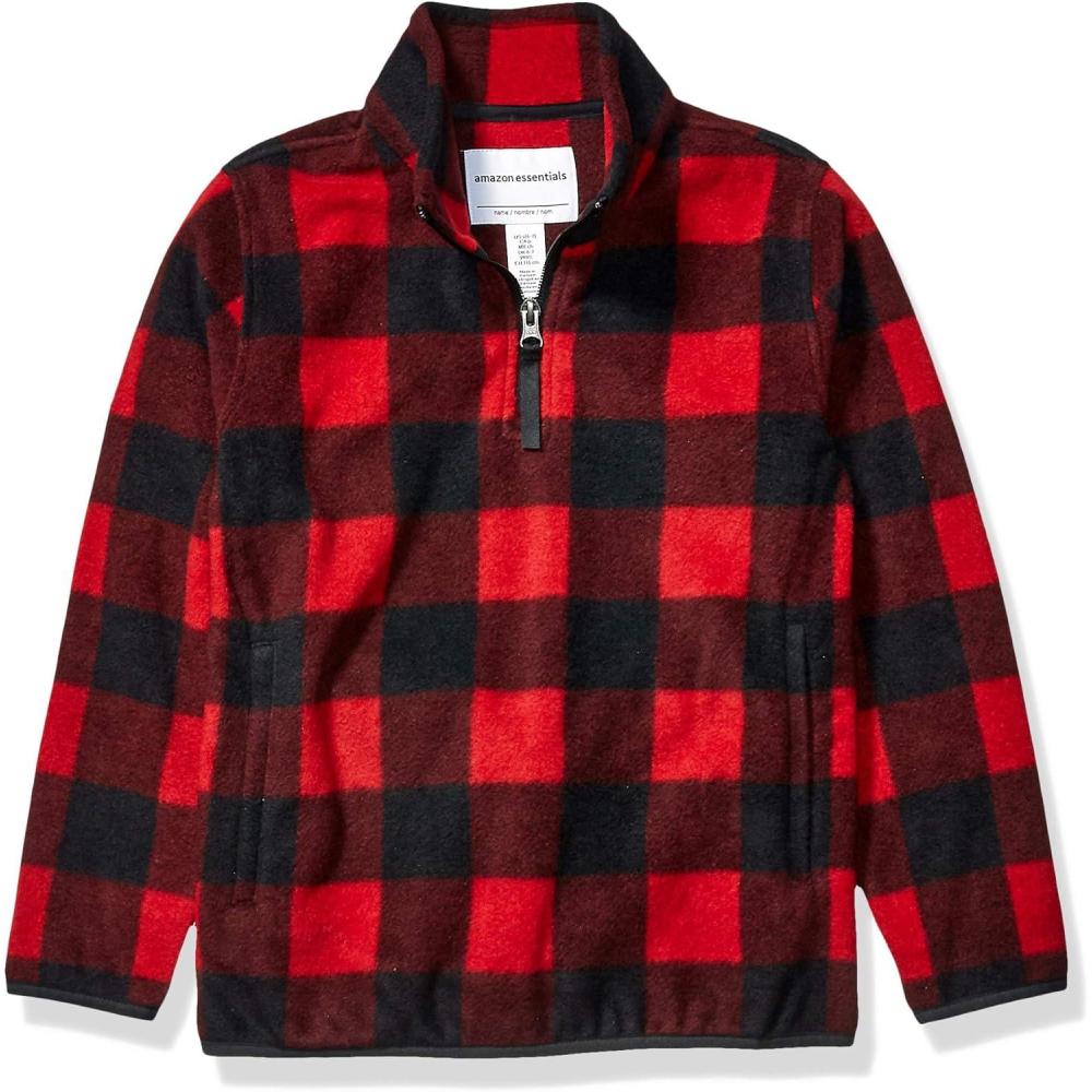 Amazon Essentials Boys and Toddlers’ Polar Fleece Quarter-Zip Pullover Jacket(Red Exploded Buffalo Check)