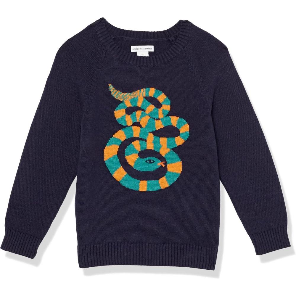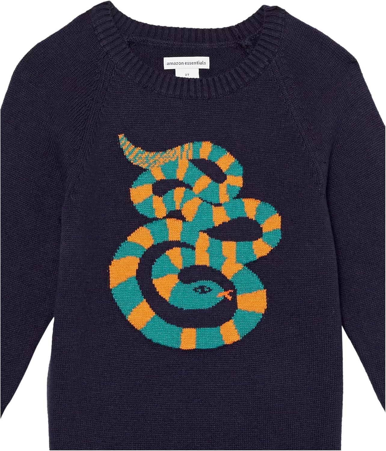 Amazon Essentials Boys and Toddlers’ Pullover Crewneck Sweater(Dark Navy Snake)
