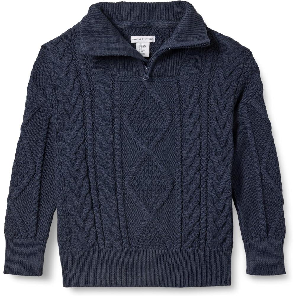 Amazon Essentials Boys and Toddlers’ Quarter-Zip Cable-Knit Relaxed-Fit Sweater(Navy)