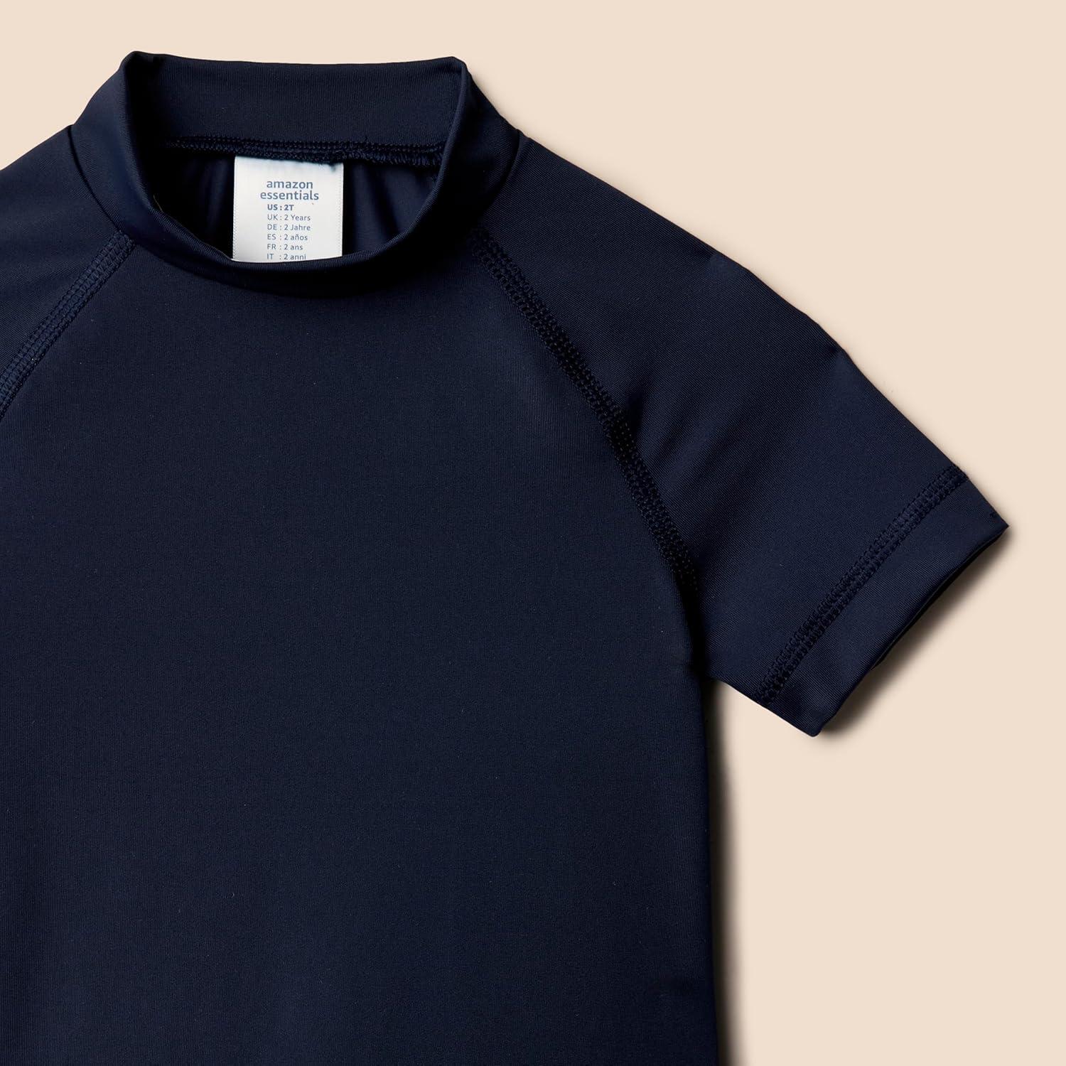 Amazon Essentials Boys and Toddlers’ Short Sleeve Rashguard T-Shirt(Navy)