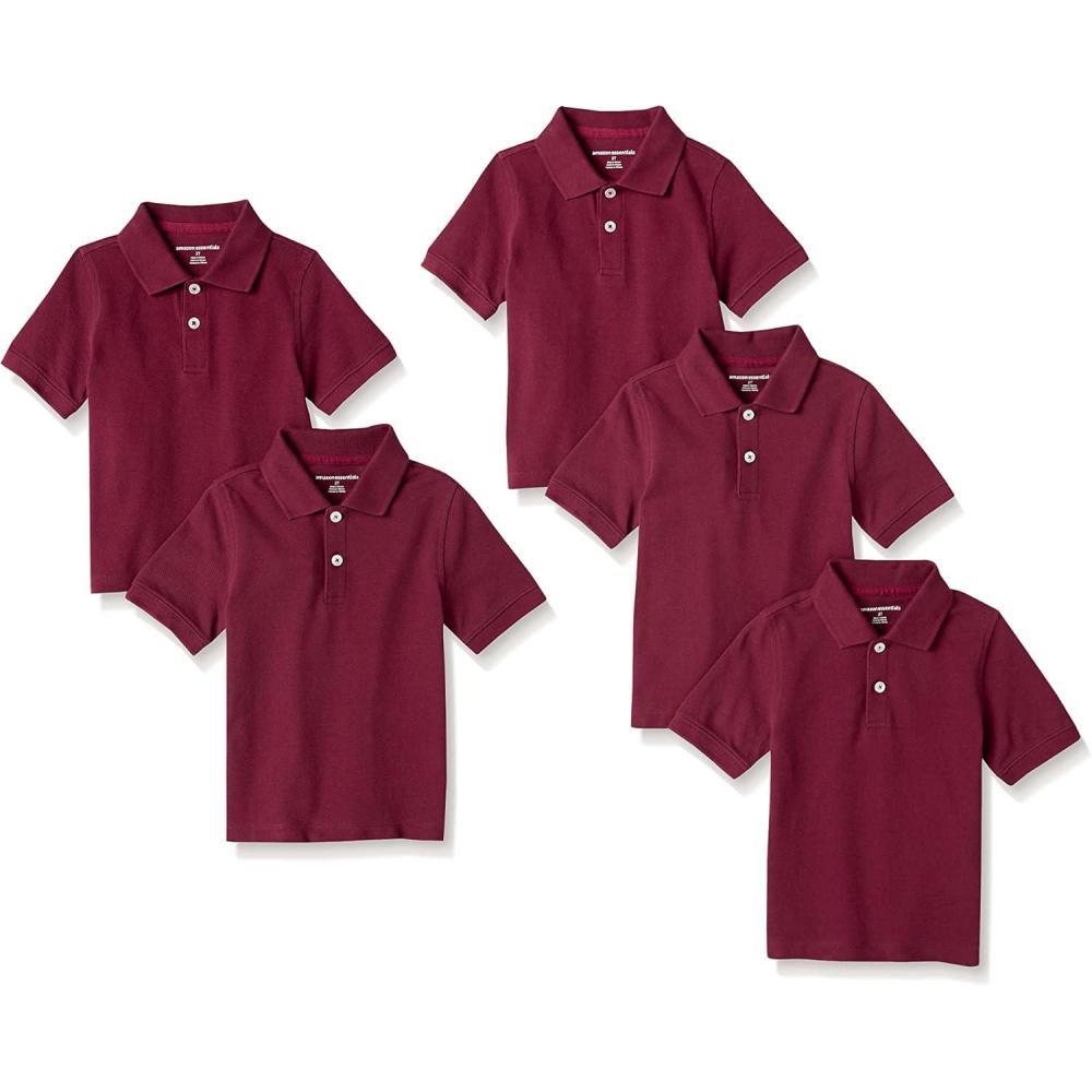 Amazon Essentials Boys and Toddlers’ Short-Sleeve School Uniform Pique Polo Shirts, Multipacks(Burgundy)
