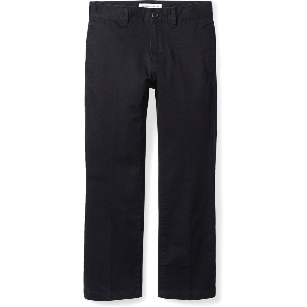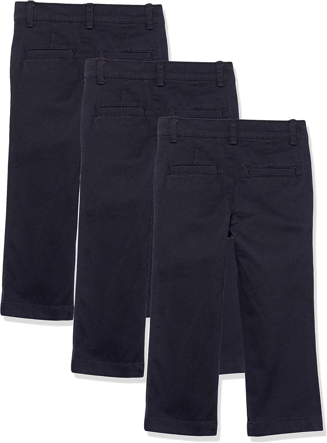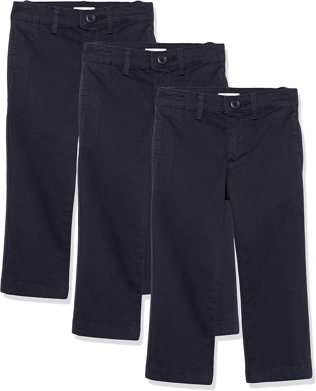 Amazon Essentials Boys and Toddlers’ Uniform Straight-Fit Flat-Front Chino Khaki Pants, Multipacks(Black)