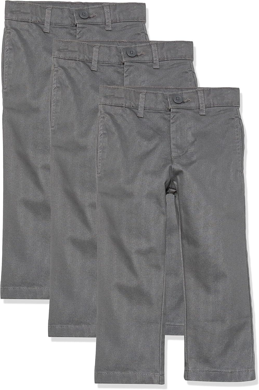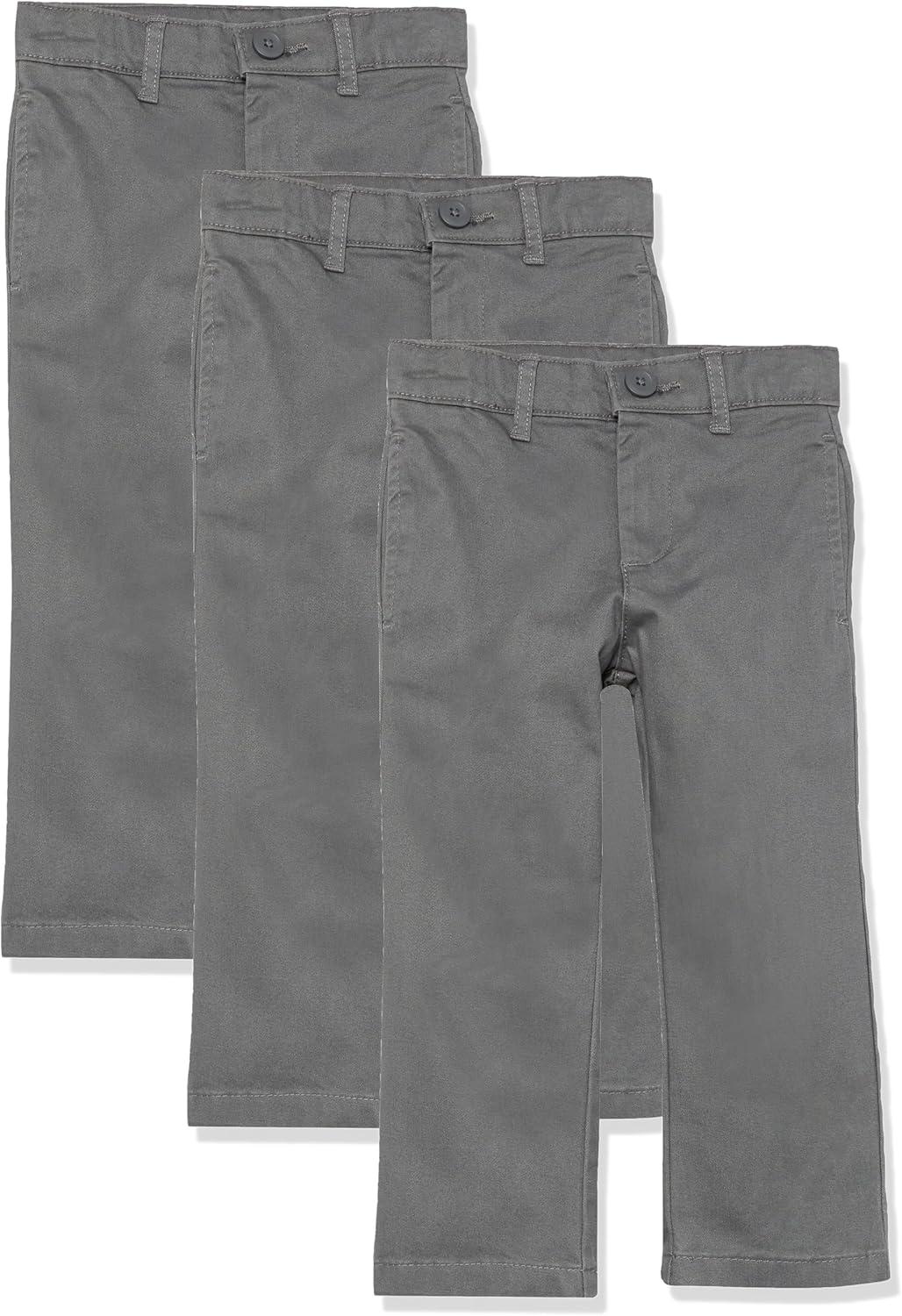 Amazon Essentials Boys and Toddlers’ Uniform Straight-Fit Flat-Front Chino Khaki Pants, Multipacks(Grey)