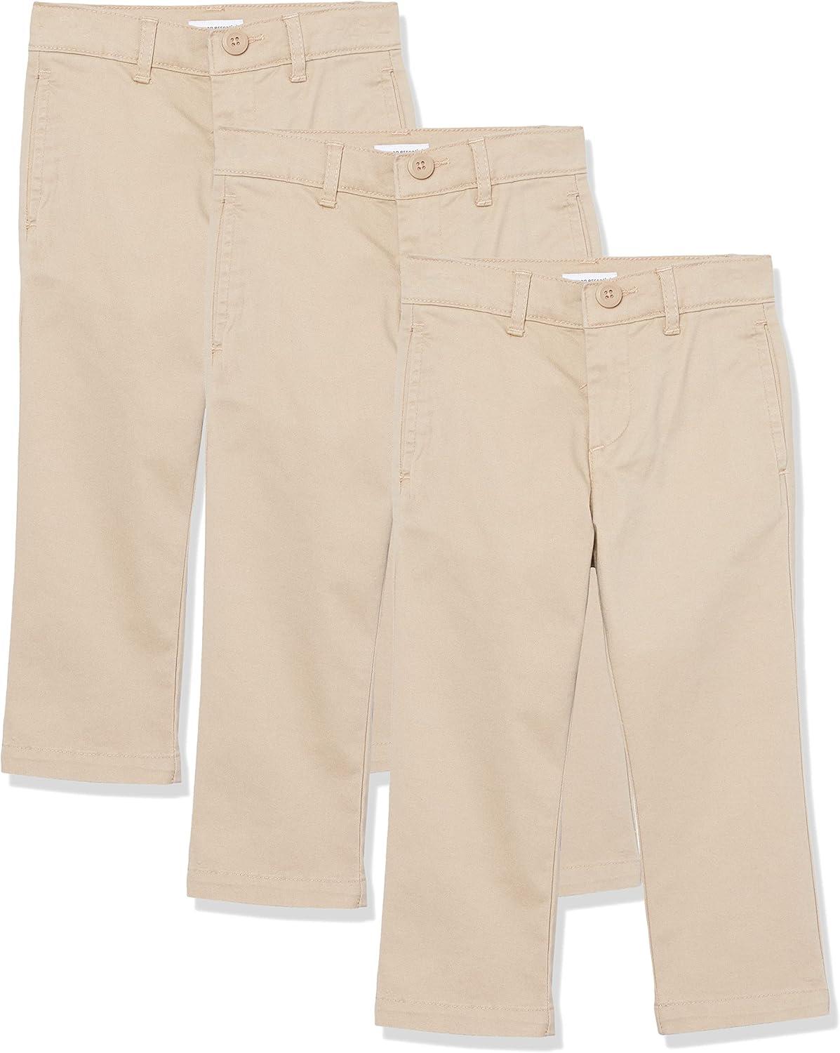 Amazon Essentials Boys and Toddlers’ Uniform Straight-Fit Flat-Front Chino Khaki Pants, Multipacks(Light Khaki Brown)