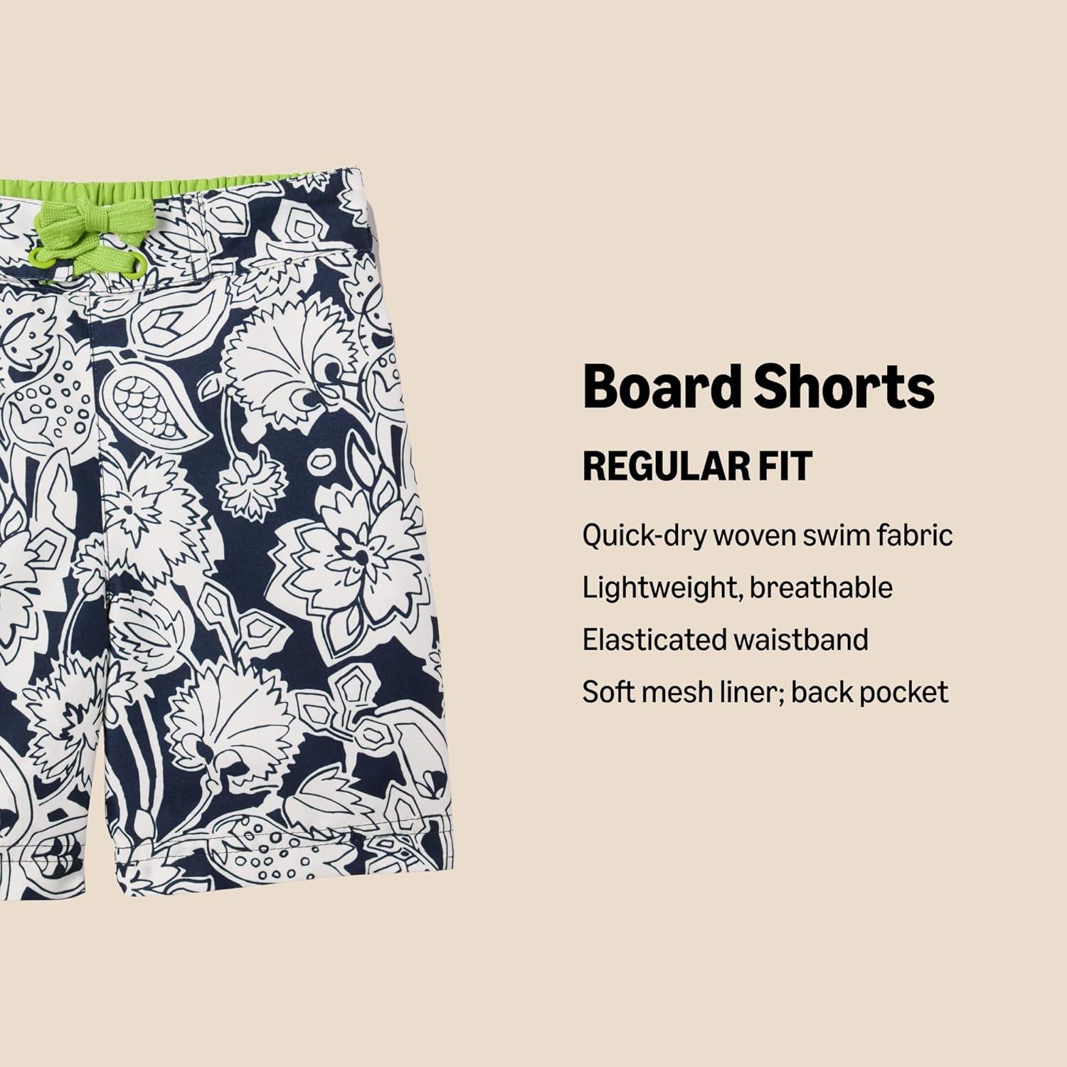 Amazon Essentials Boys and Toddlers’ Woven Board Short(Navy Folk Floral)