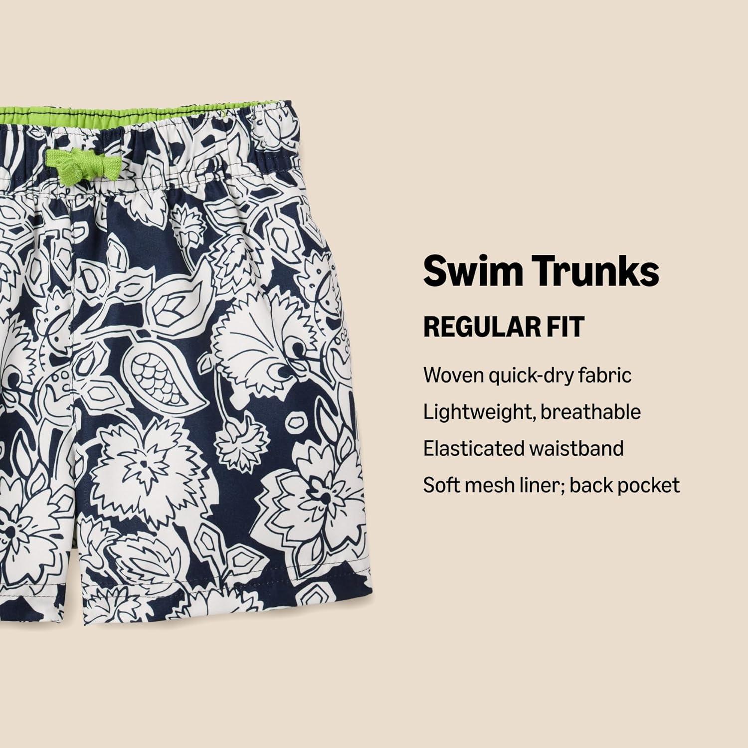 Amazon Essentials Boys and Toddlers’ Woven Swim Trunk(Navy Folk Floral)