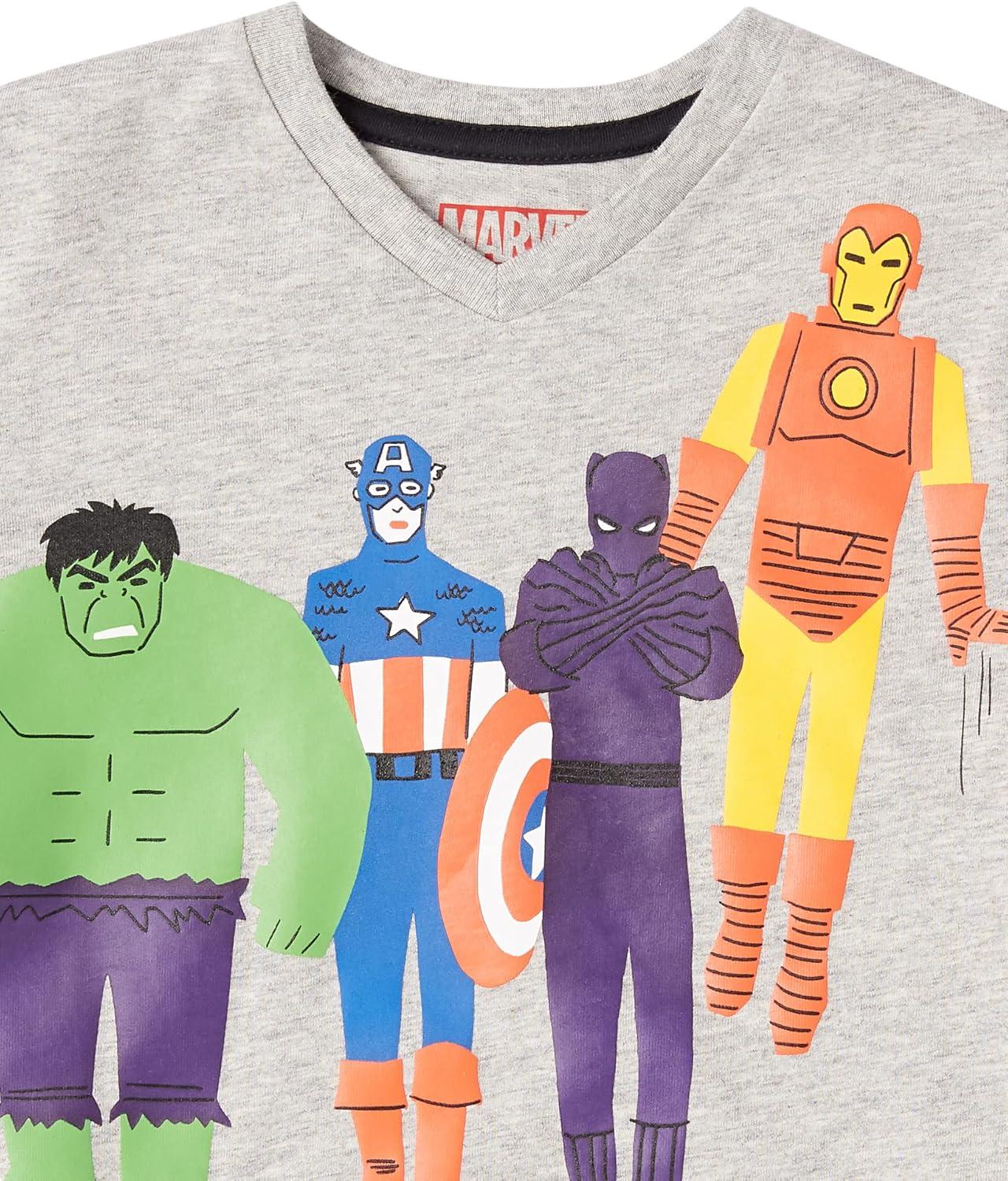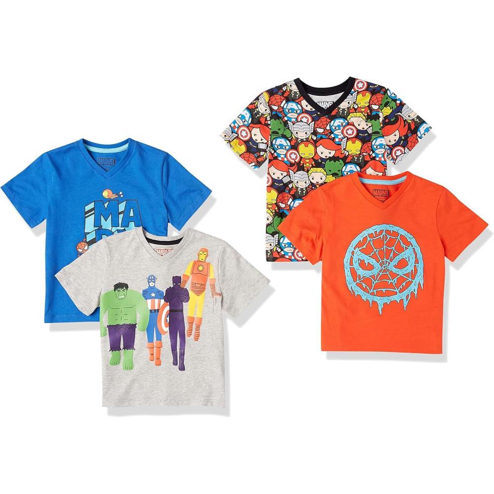 Amazon Essentials Boys Short-Sleeve V-Neck T-Shirts(Marvel Iconic Friends)