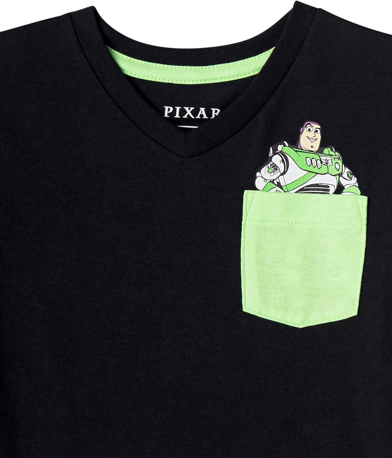 Amazon Essentials Boys Short-Sleeve V-Neck T-Shirts(Neon/Toy Story Friends)