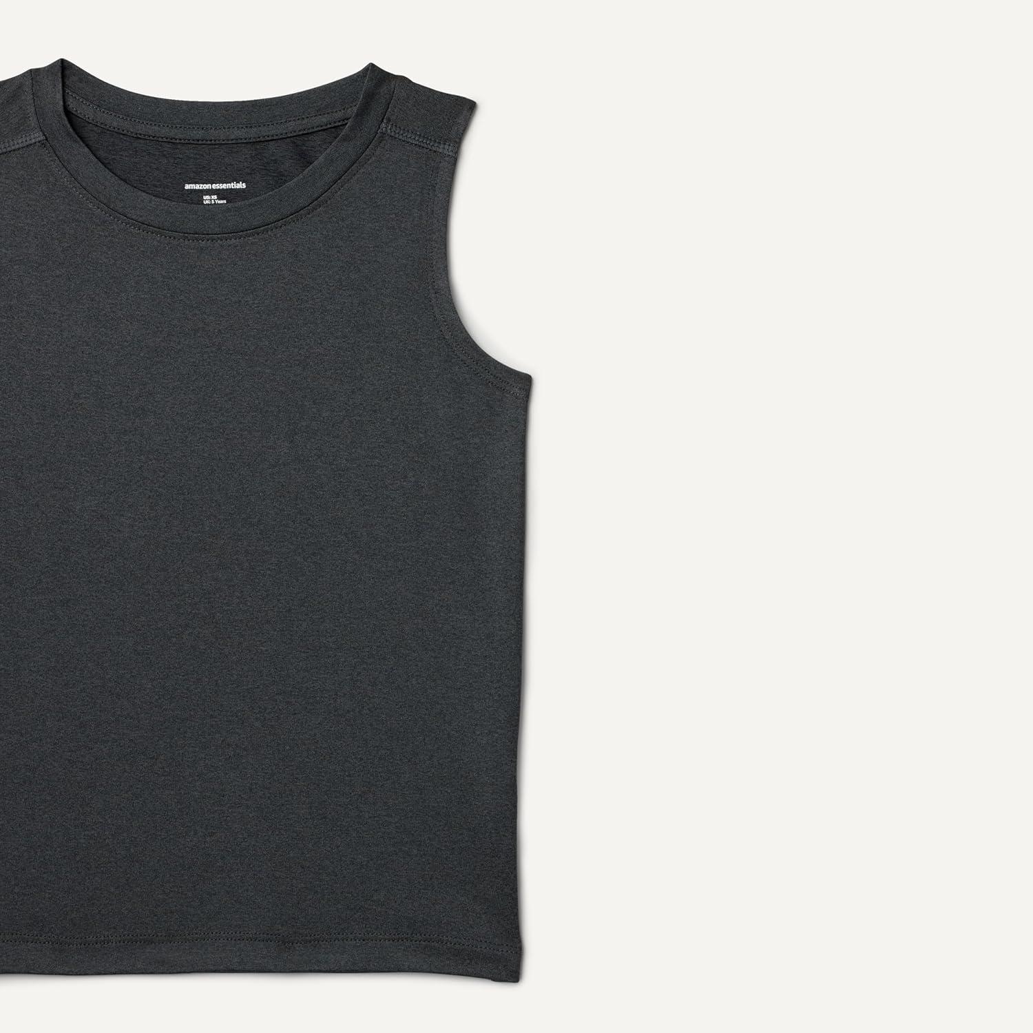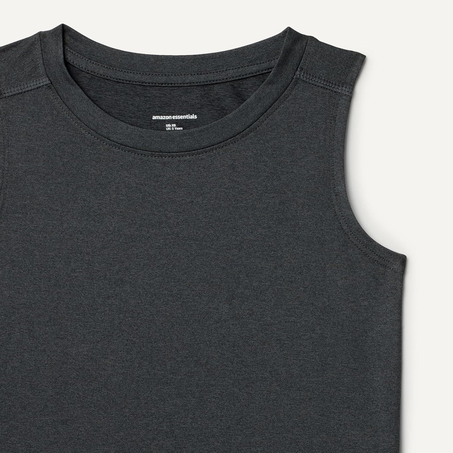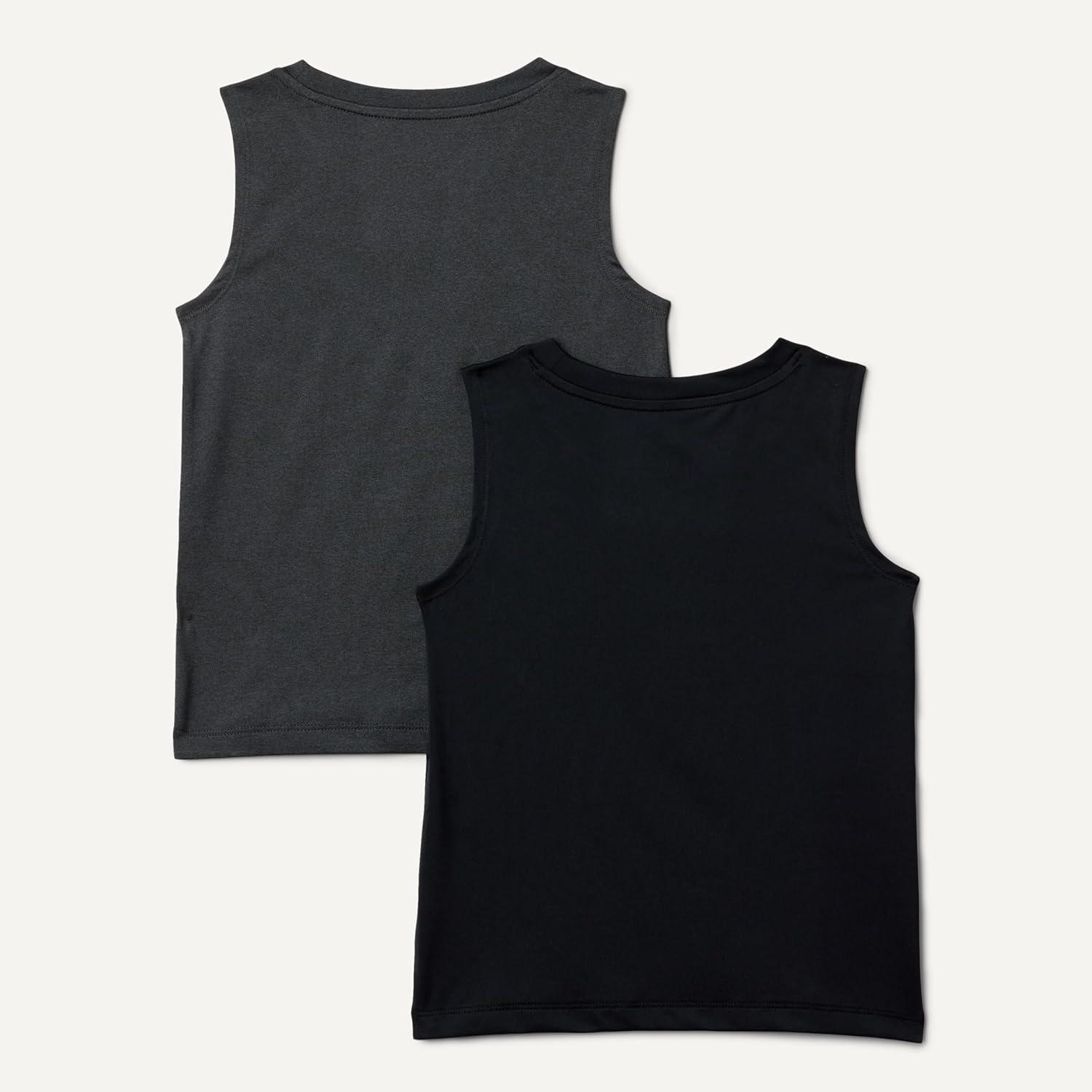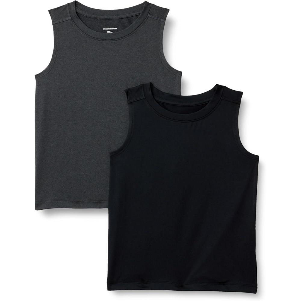 Amazon Essentials Boys’ Tech Stretch Tank Top, Pack of 2(Black/Heather Graphite)