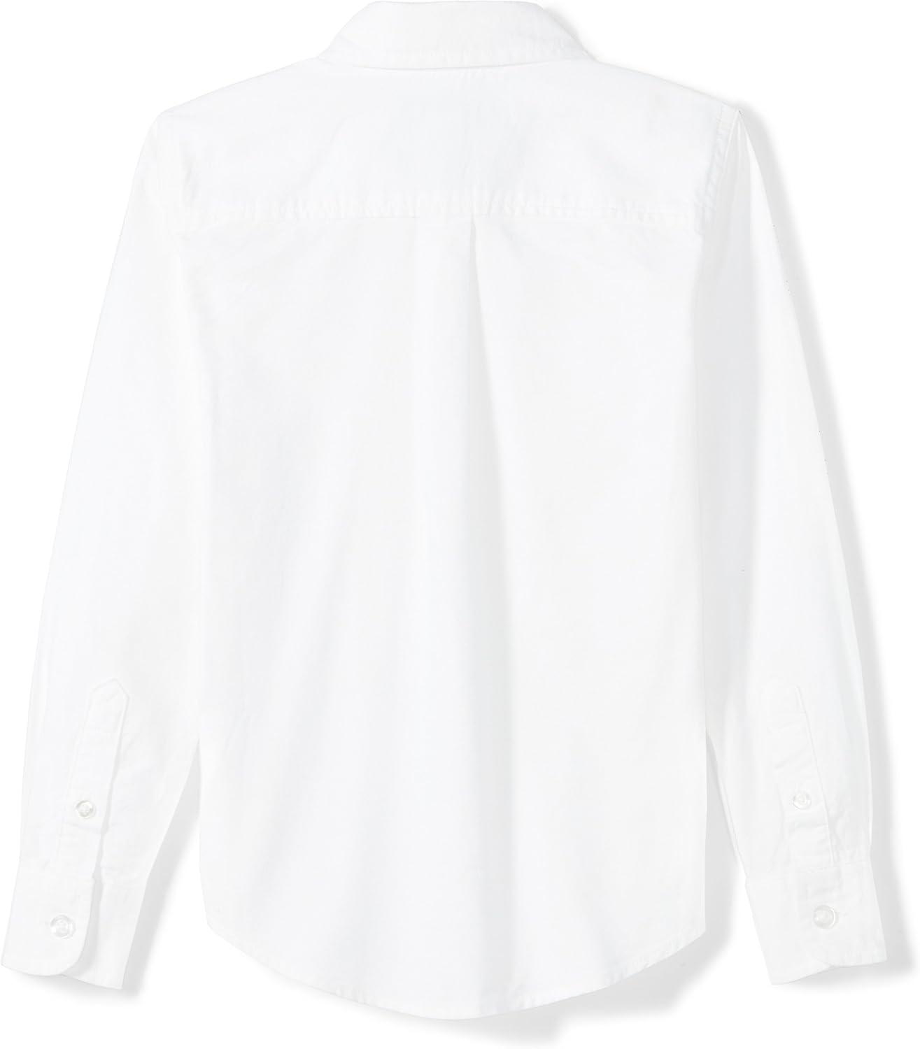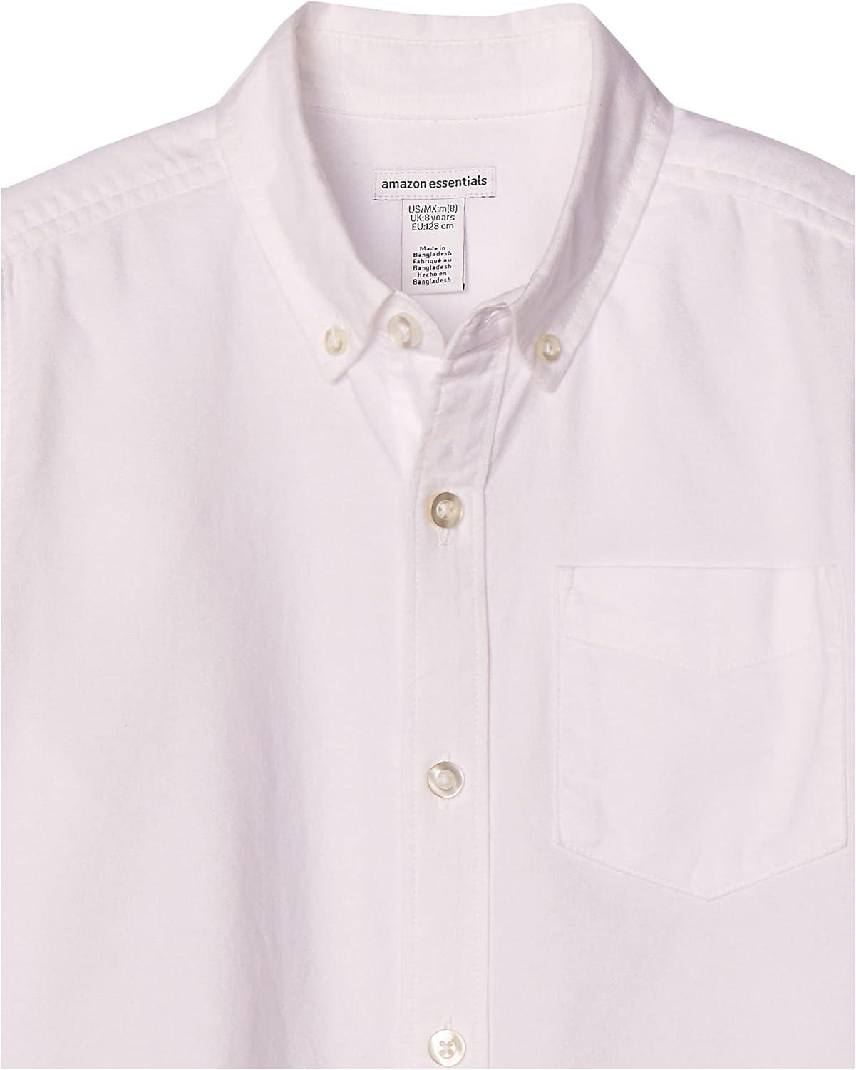 Amazon Essentials Boys' Uniform Classic Fit Long-Sleeve Woven Oxford Shirt(White)